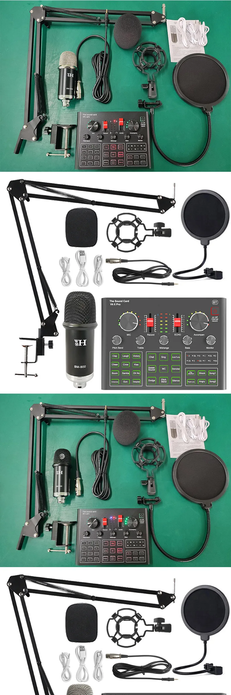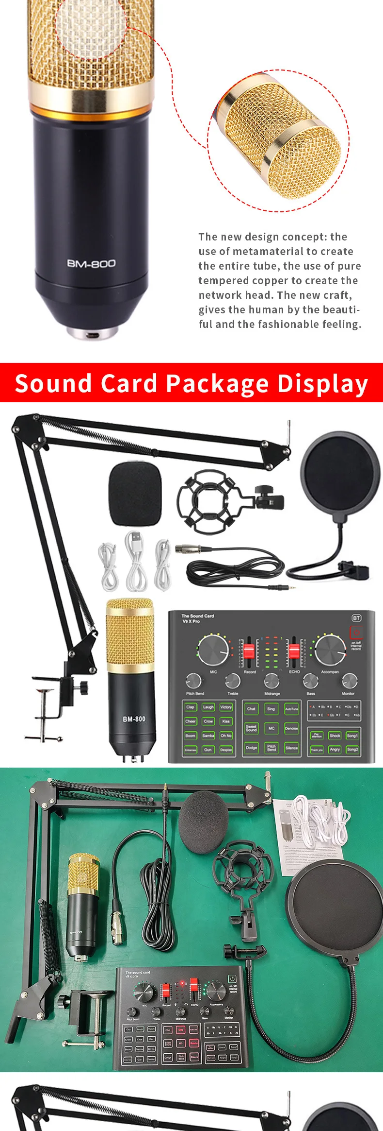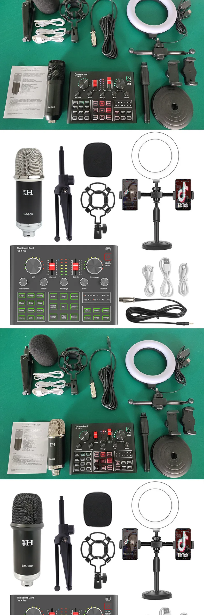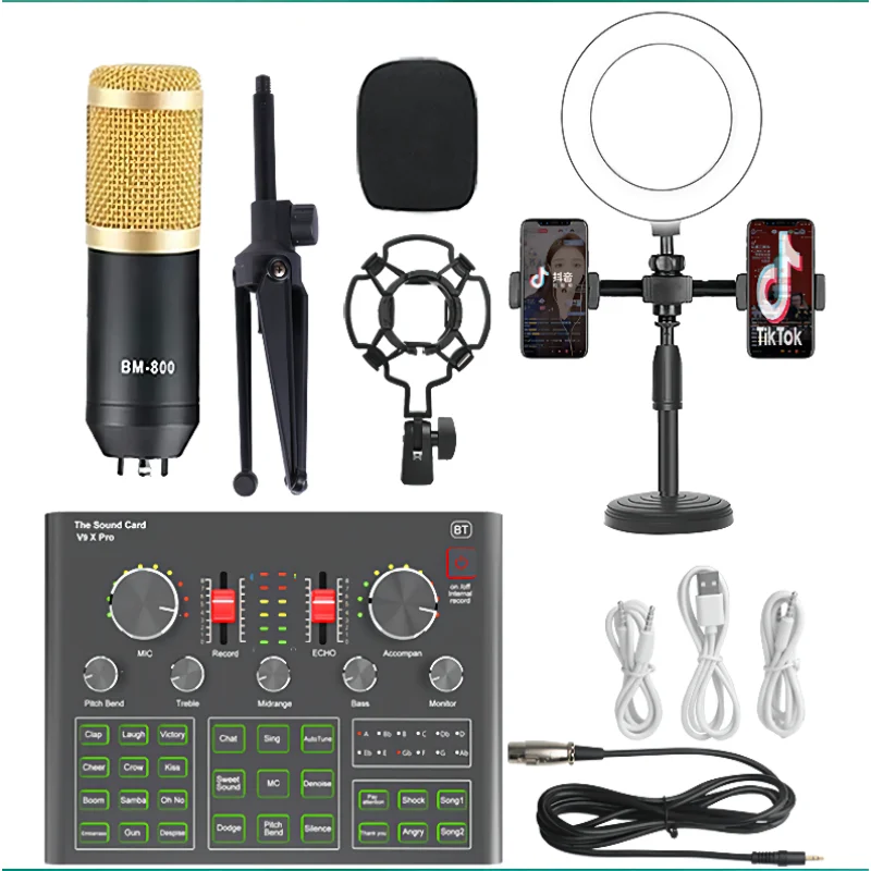 Конденсаторный микрофон BM 800, звуковая карта V9XPRO с кольцевым з...