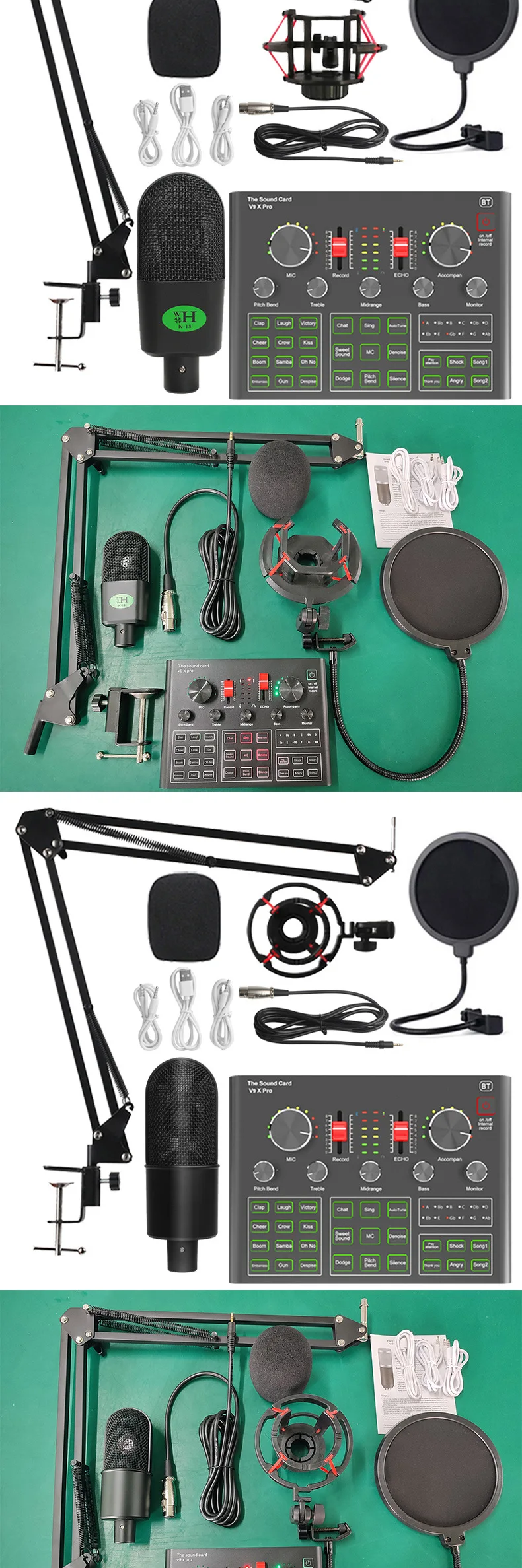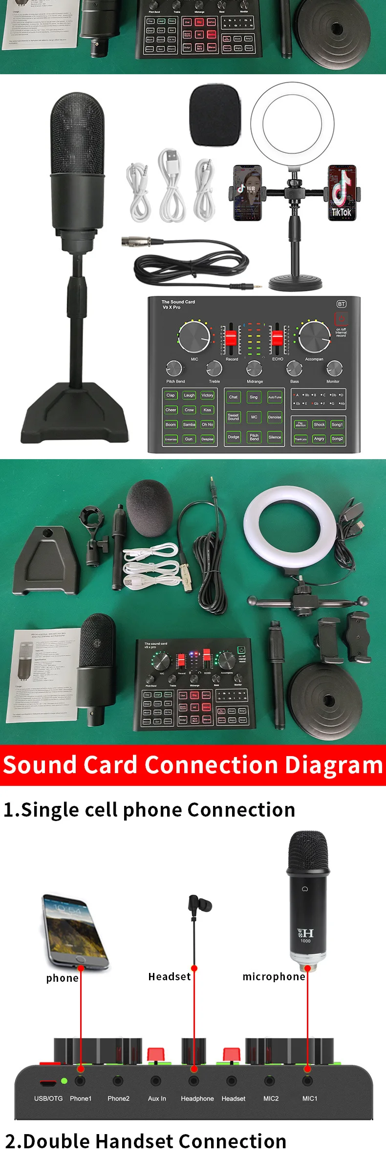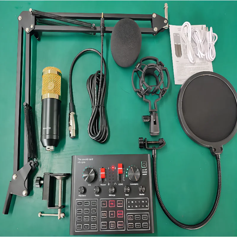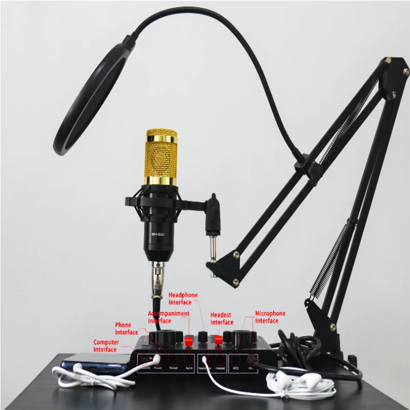 Конденсаторный микрофон BM 800, звуковая карта V9XPRO с кольцевым з...