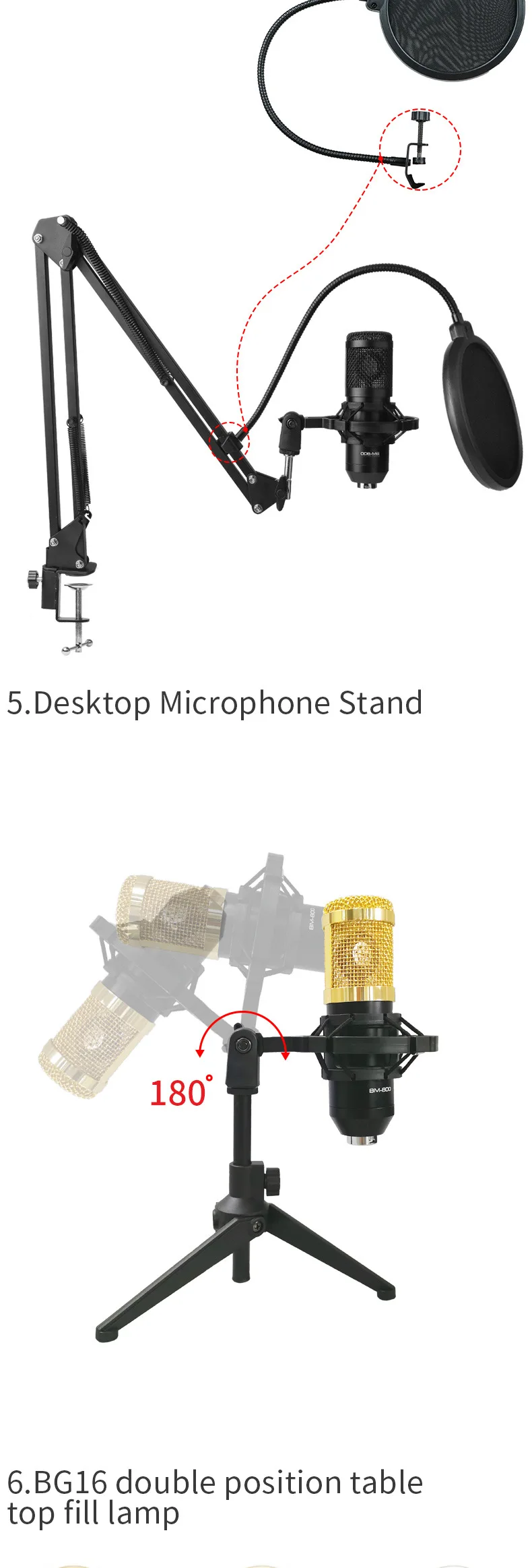 Штатив для микрофона BM 800, со встросветильник кой, с картой для ж...