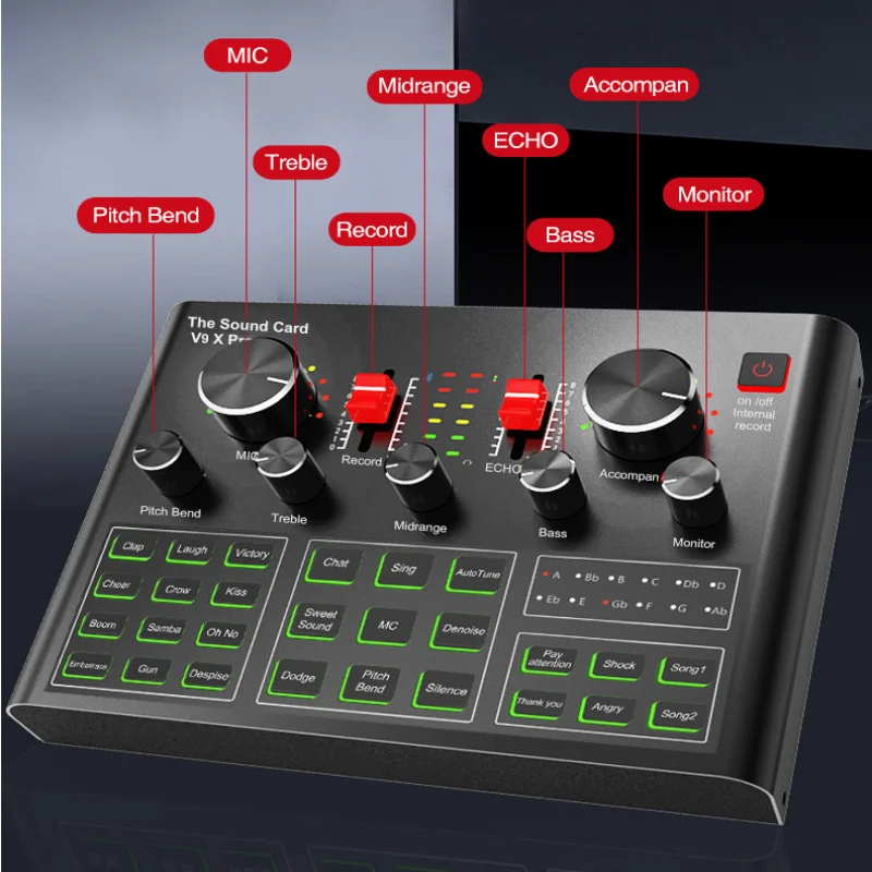 Звуковая карта V9xpro может быть подключена к компьютерной гарнитуре с микрофоном для записи трансляций в реальном времени и пения