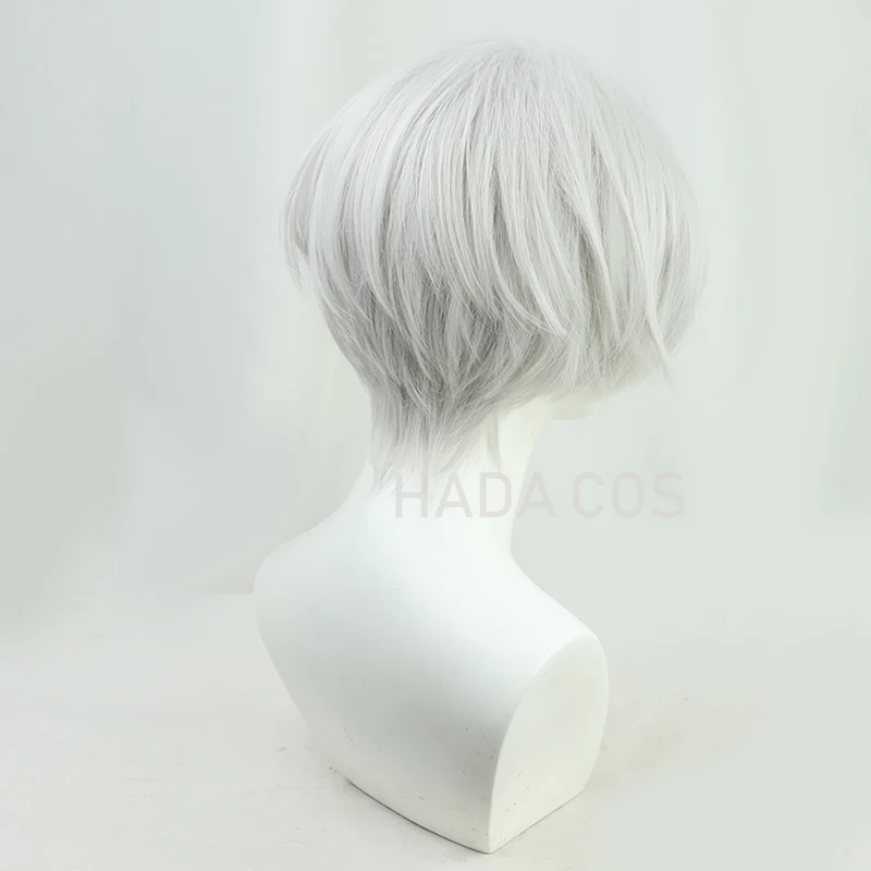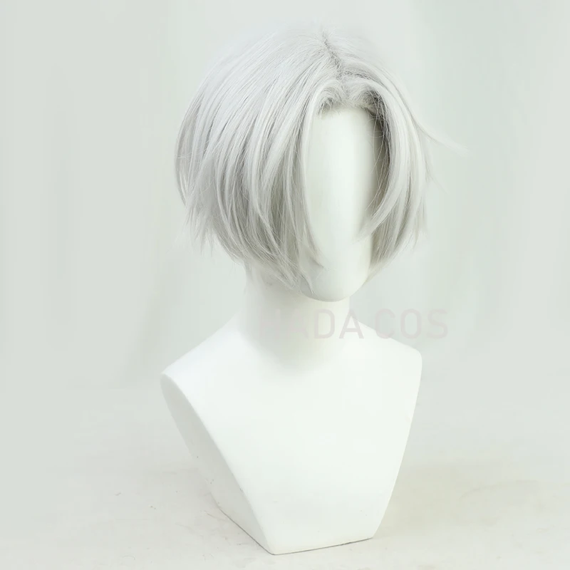 Парик для косплея из коротких серебристо-белых термостойких волос и...