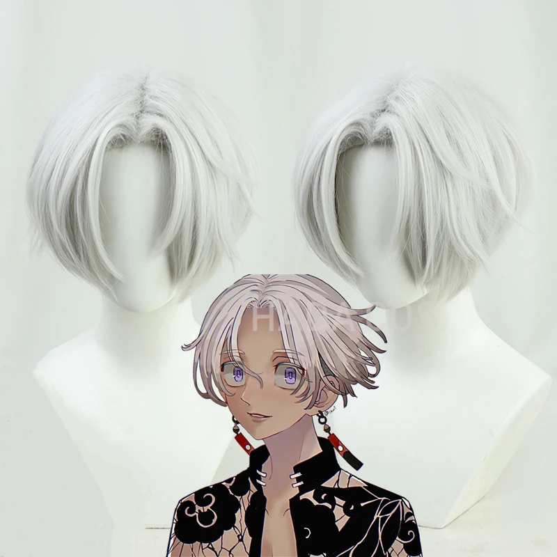 Аниме Tokyo Revengers Tenjiku Izana Kurokawa косплей парик серебристо-белый короткий парик термостойкие накладные волосы парик Кепка Izana серьги реквизит