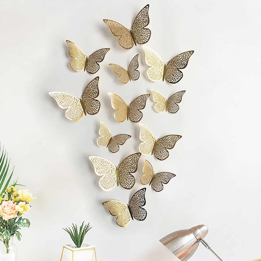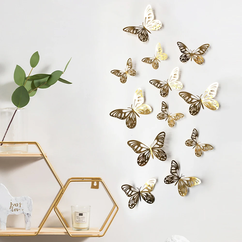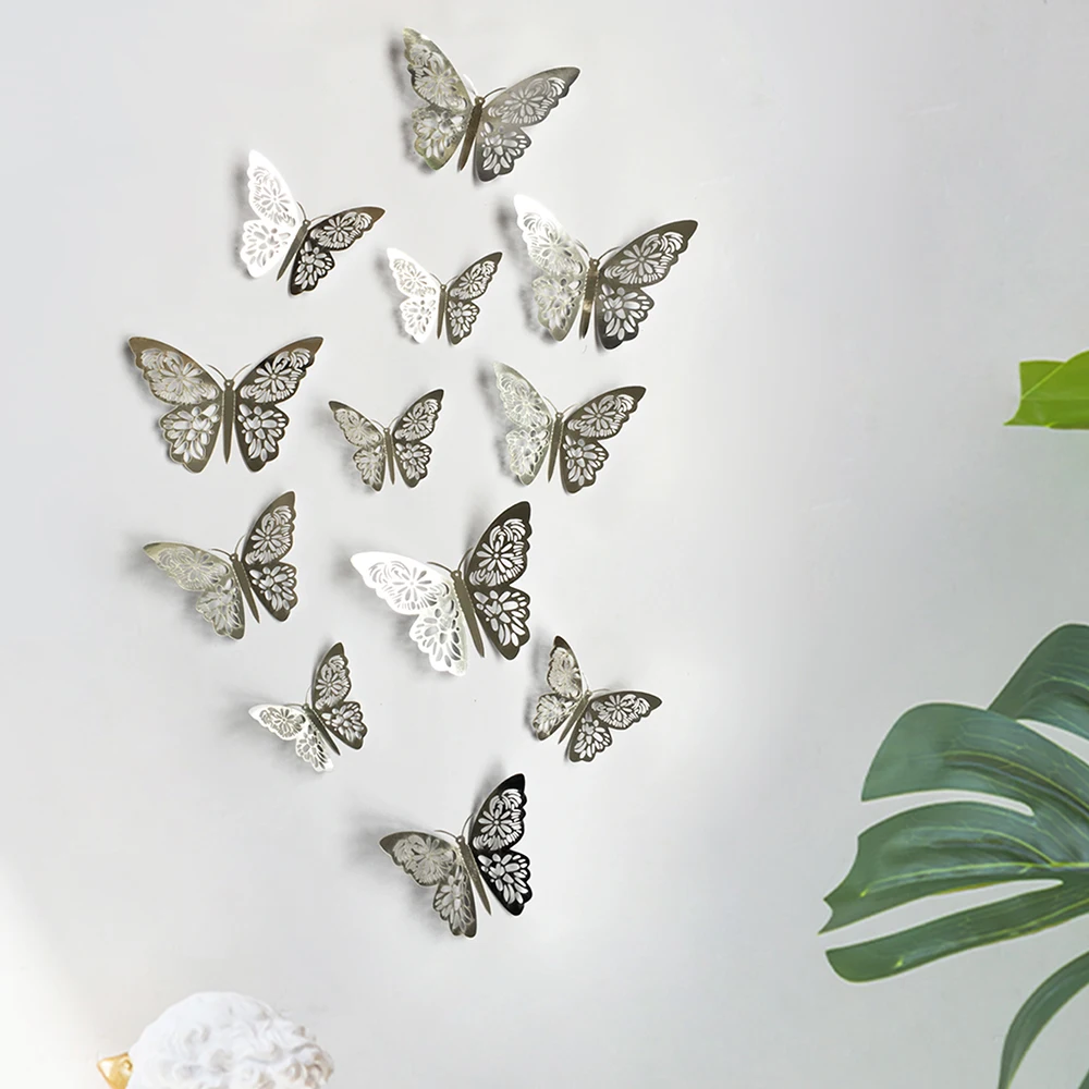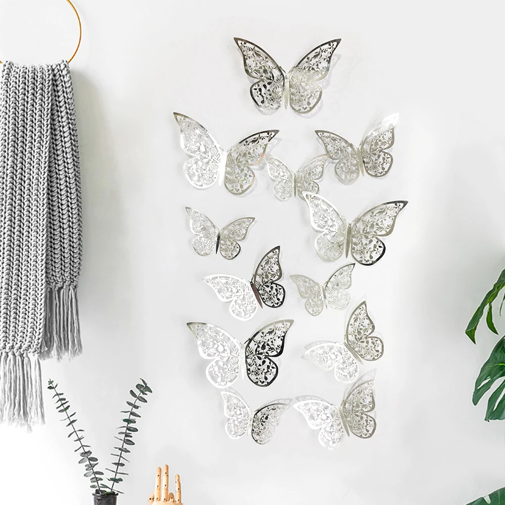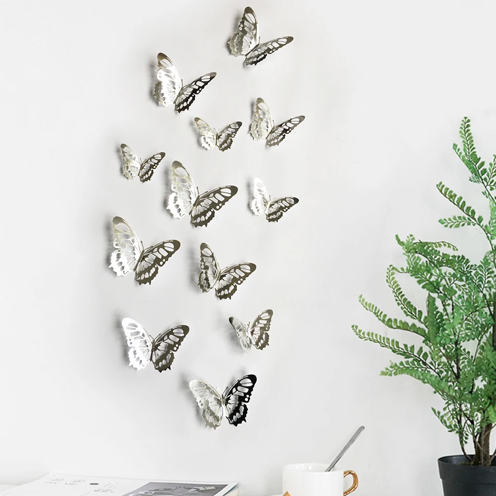 12 шт.компл. красивые наклейки на стену в виде бабочки, домашний декор для холодильника, шкафа, стеклянной мебели, Настенный декор, самоклеящиеся наклейки