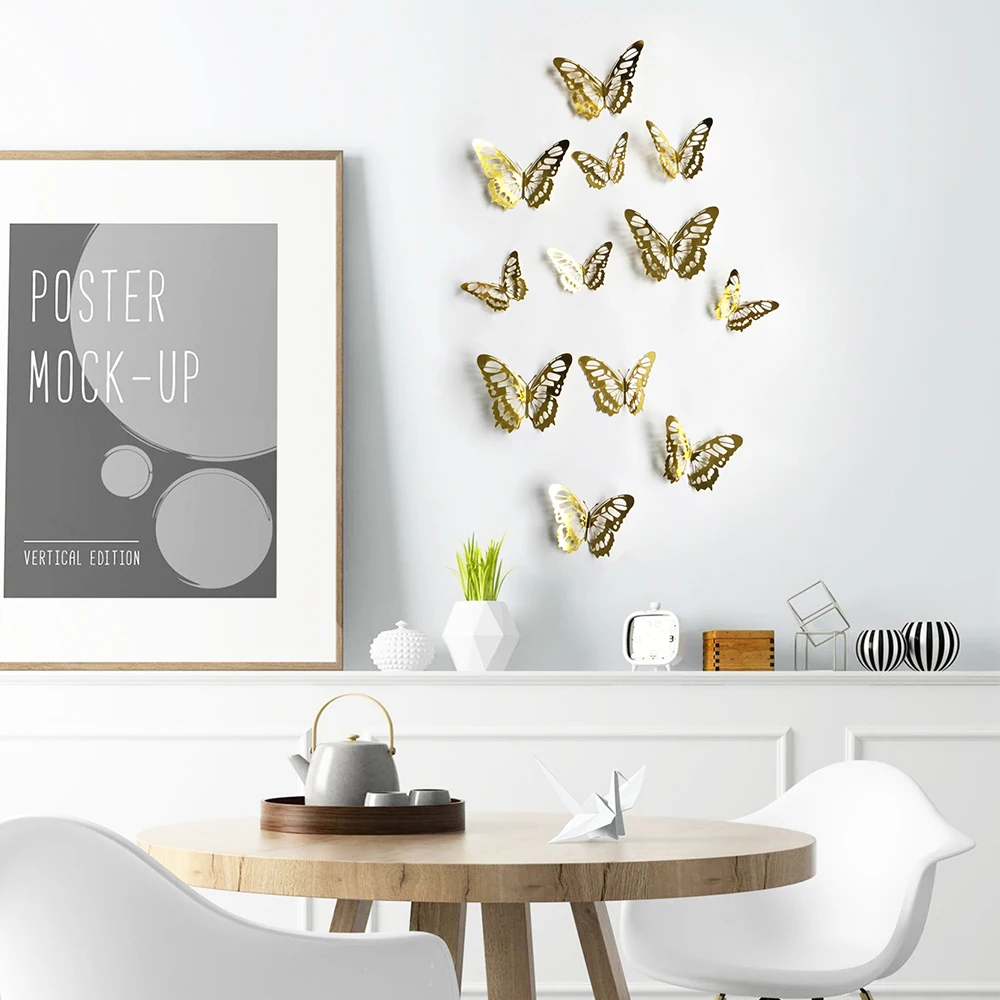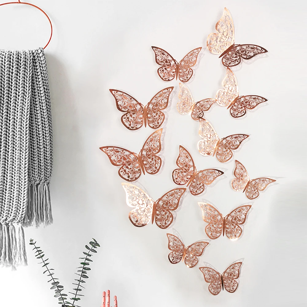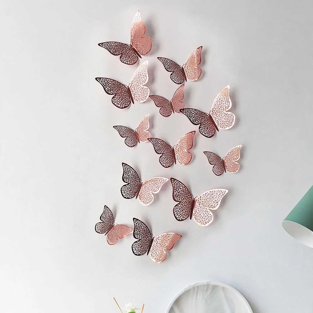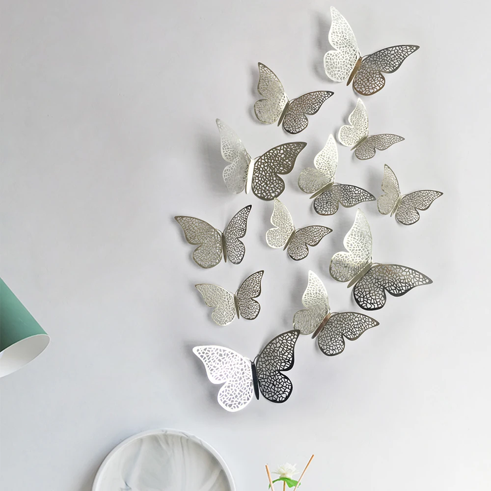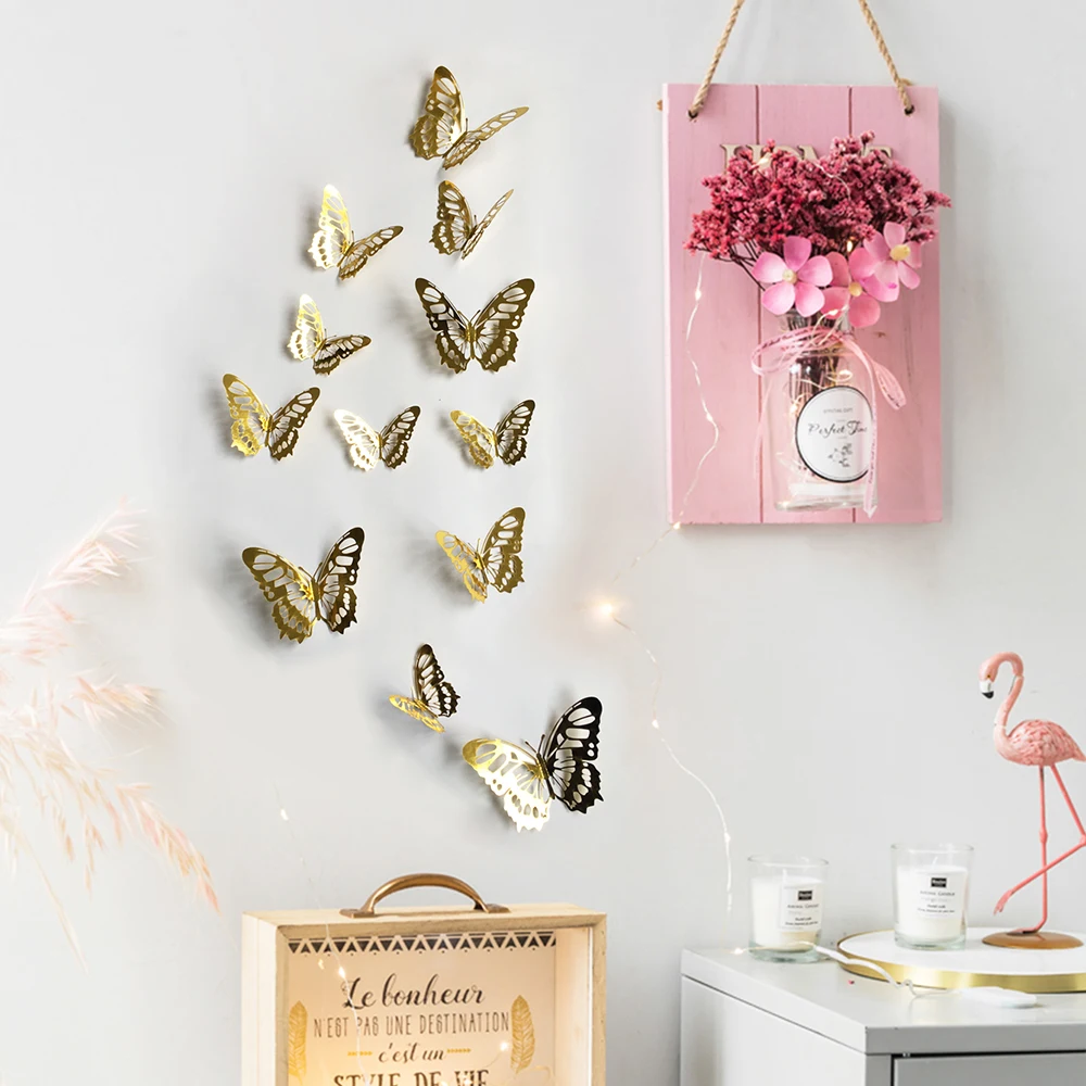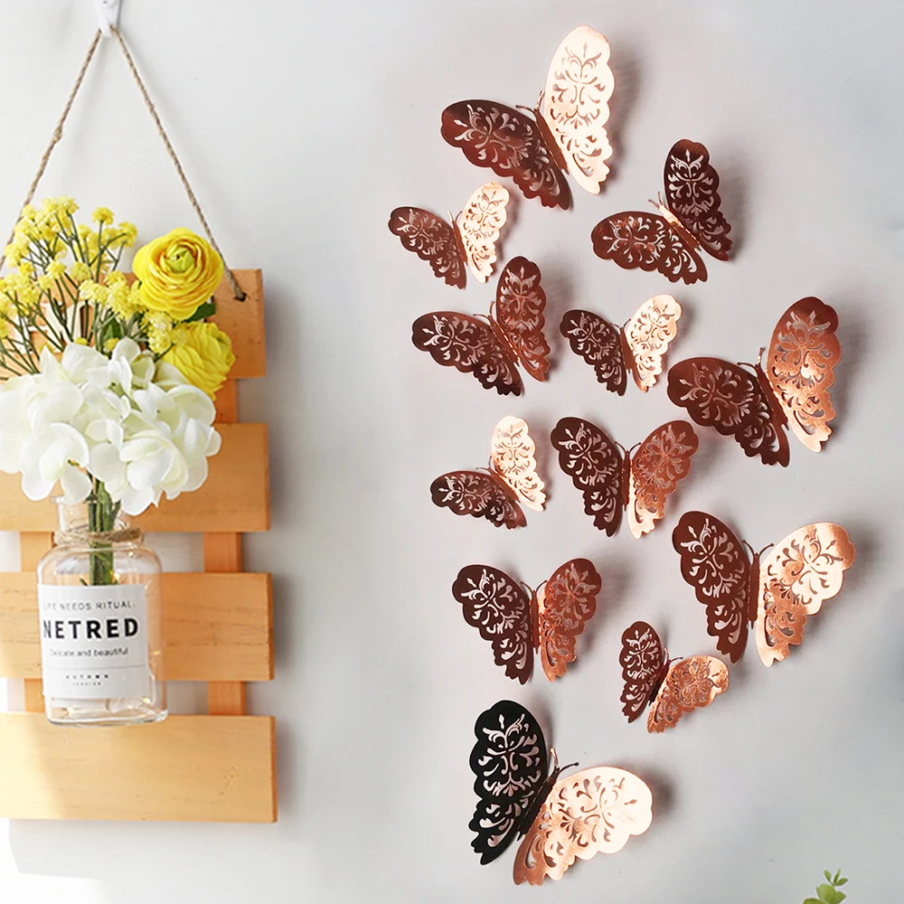 12 шт.компл. красивые наклейки на стену в виде бабочки, домашний декор для холодильника, шкафа, стеклянной мебели, Настенный декор, самоклеящиеся наклейки