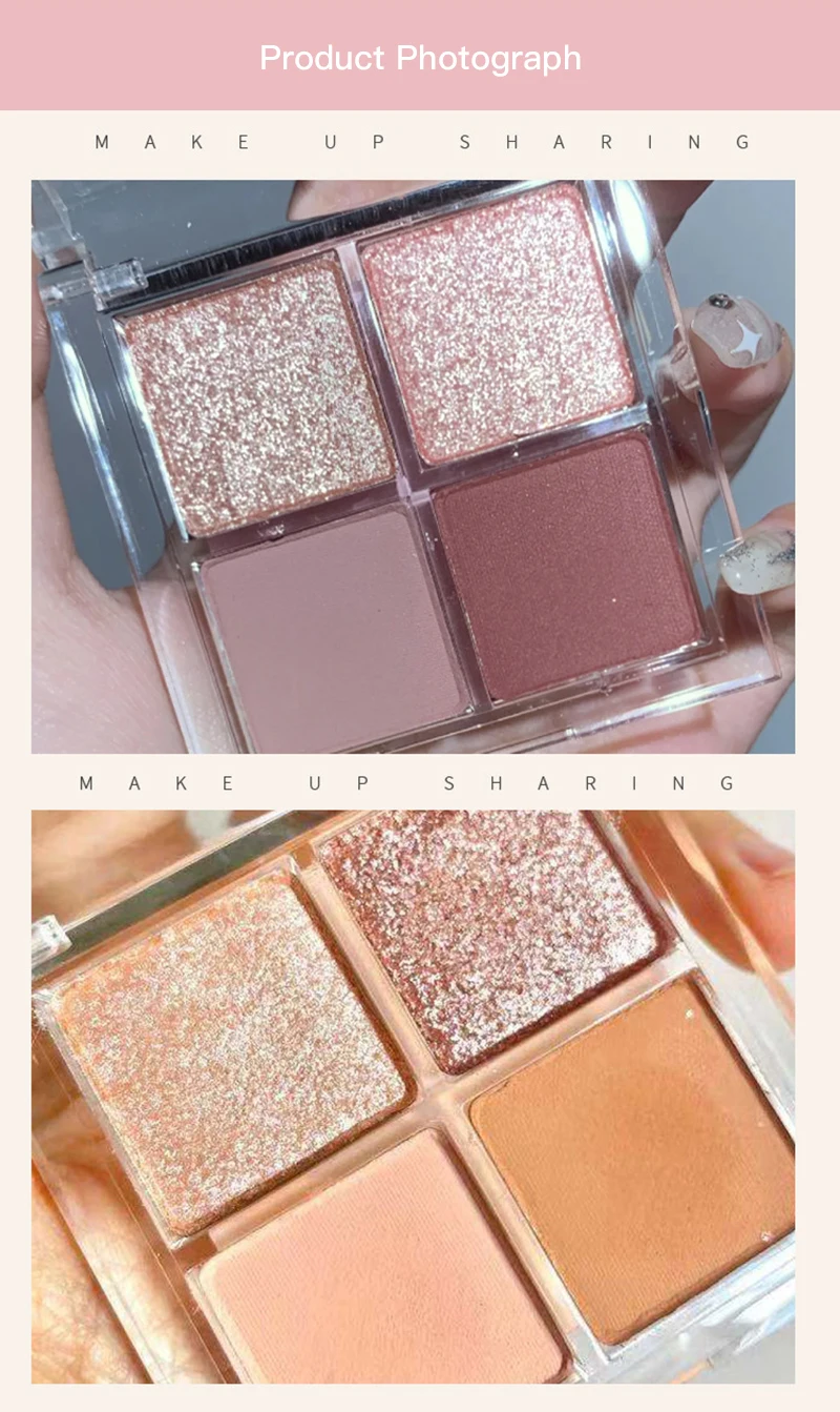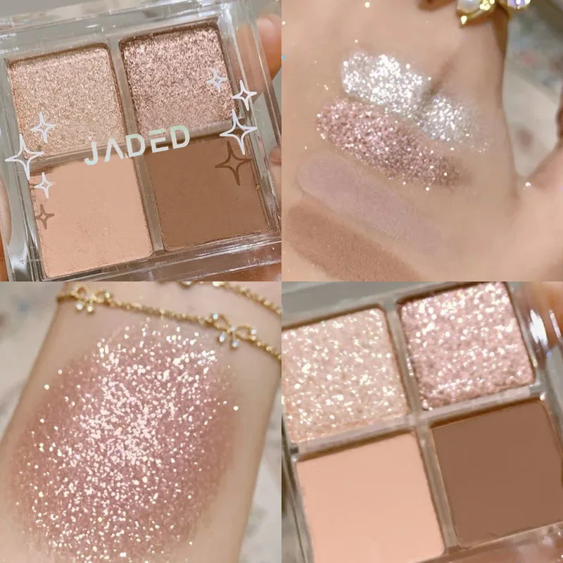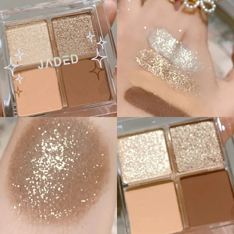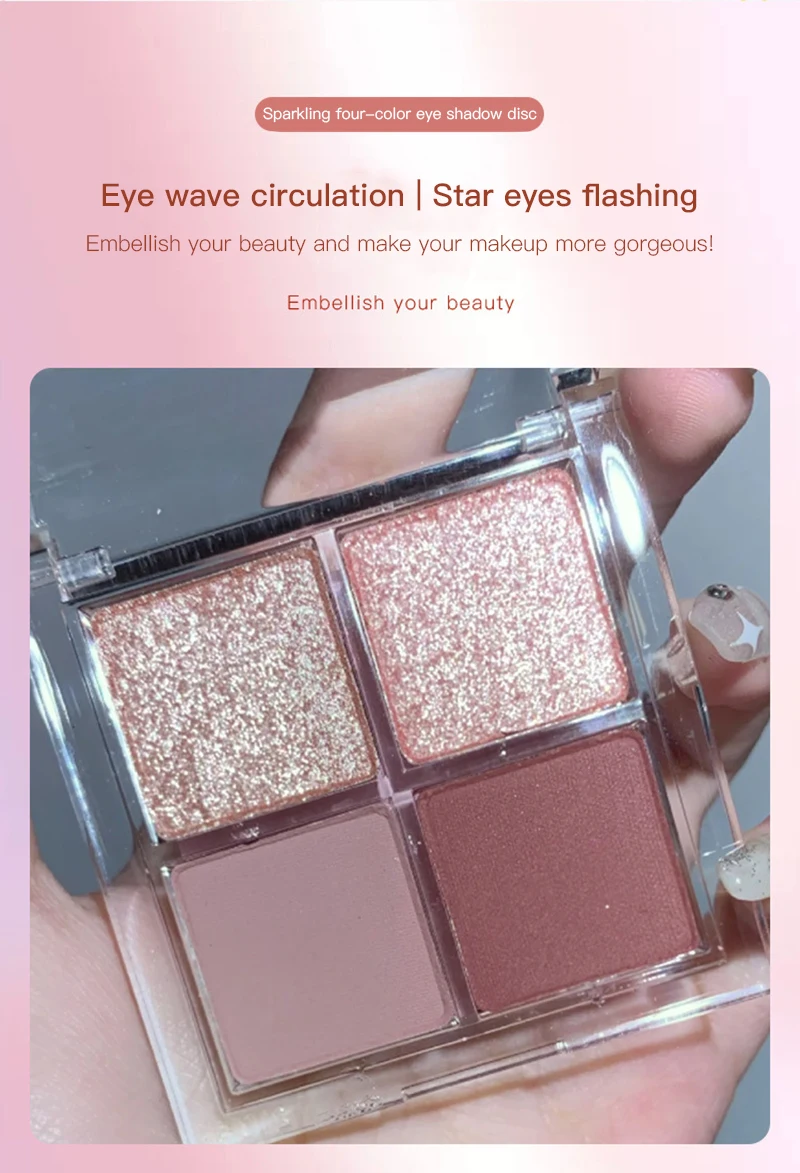 Палитра теней для век, 4 цвета, блестящие тени для румян с высоким блеском, водонепроницаемая палитра теней для макияжа, косметика