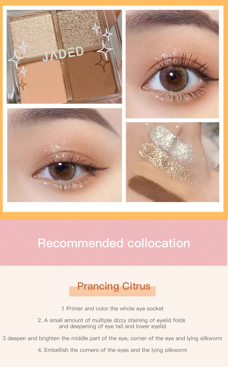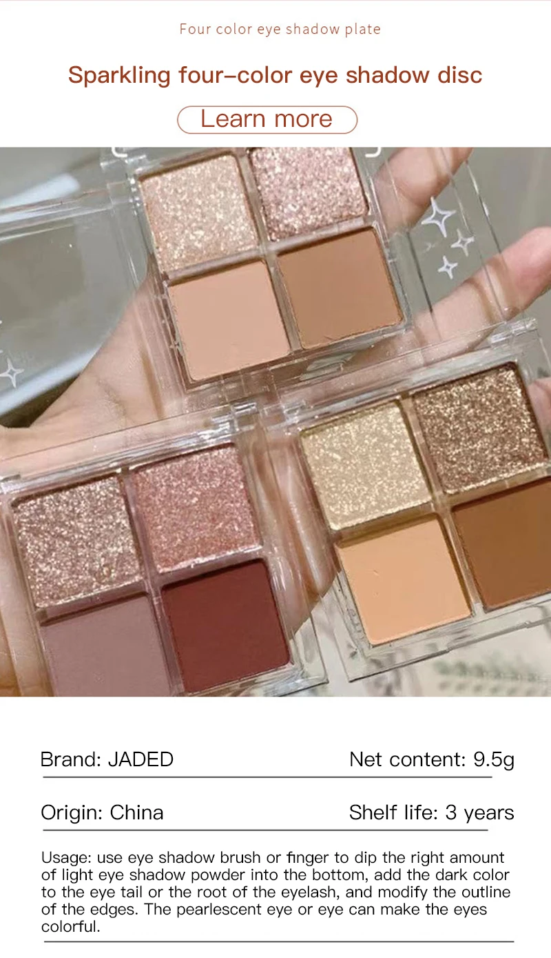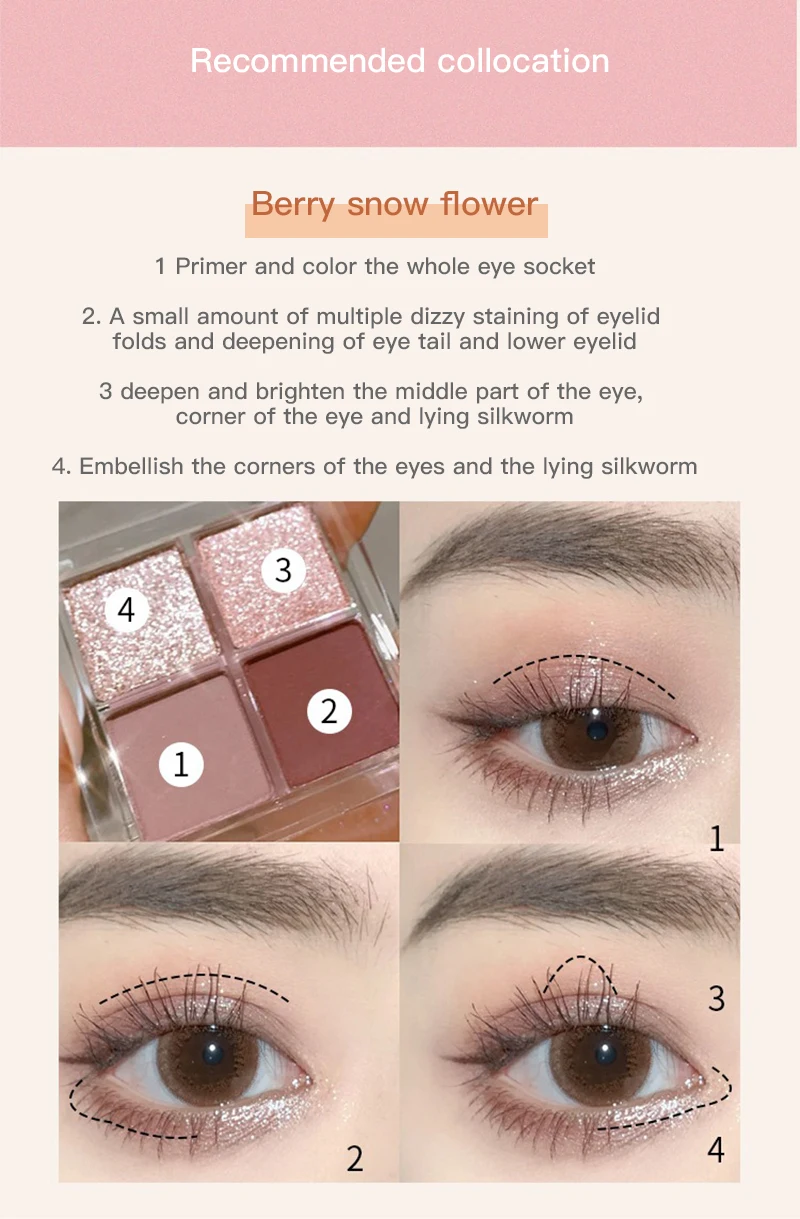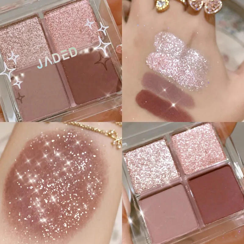 Палитра теней для век, 4 цвета, блестящие тени для румян с высоким блеском, водонепроницаемая палитра теней для макияжа, косметика