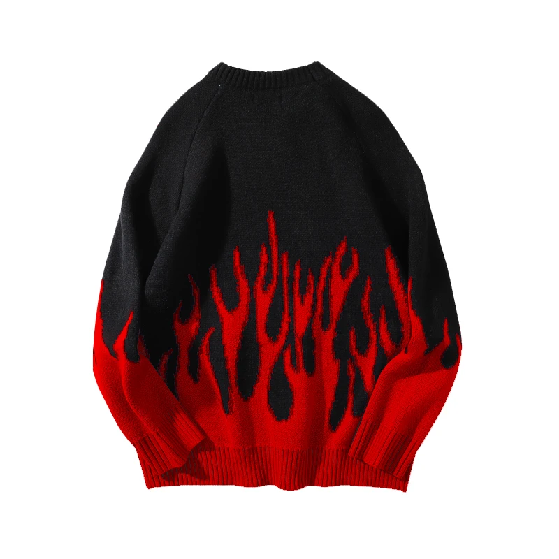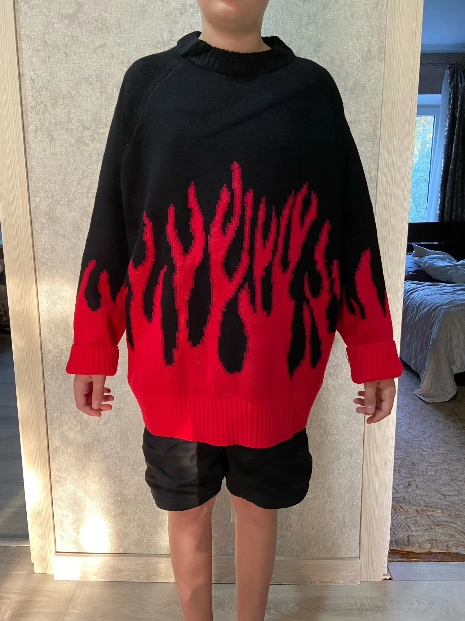 Свитер мужской в стиле ретро, уличная одежда с принтом пламени, в стиле хип-хоп, пуловер из спандекса с круглым вырезом, повседневный Свитер оверсайз для пар, осень