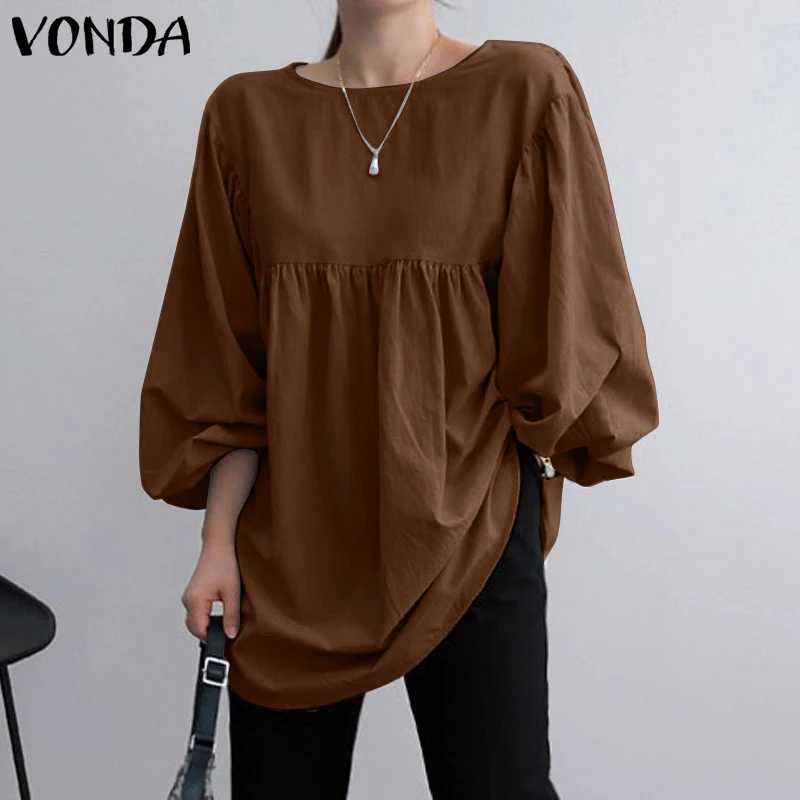 2022 VONDA осенние Рубашки, Повседневная плиссированная блузка с пы...
