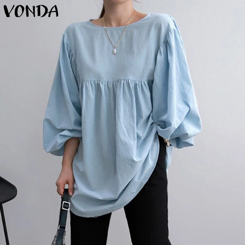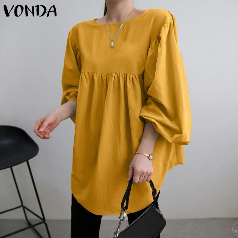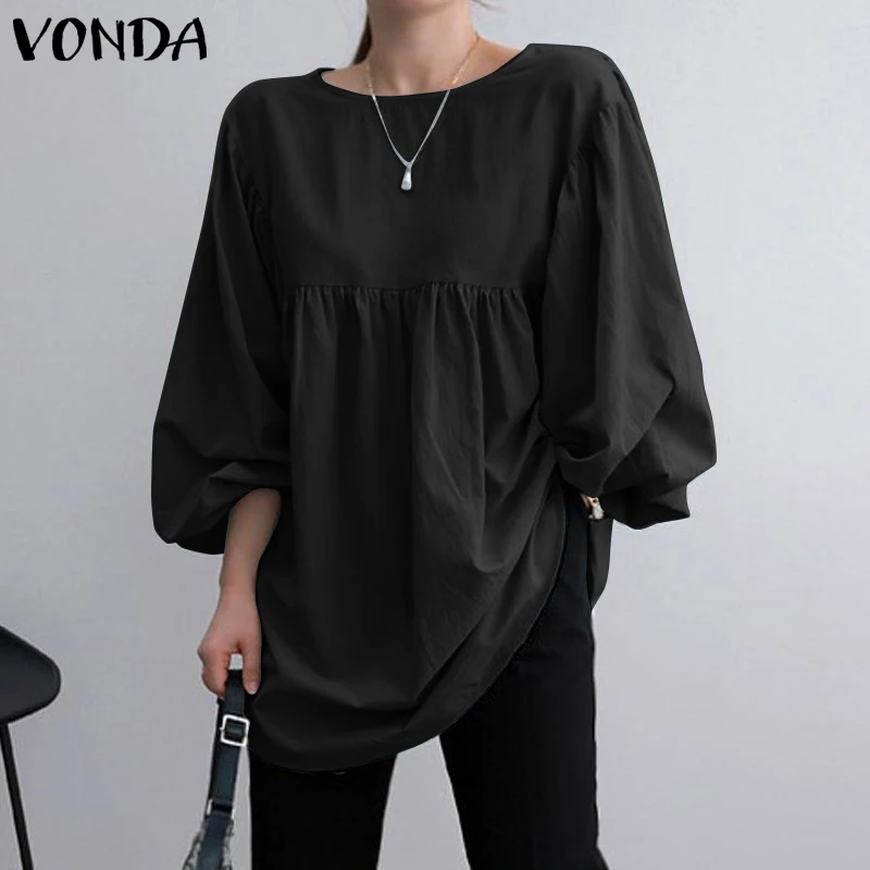 Женские Элегантные рубашки 2022 VONDA Повседневная Туника С АСИММЕТРИЧНЫМ ПОДОЛОМ однотонная блузка 2022 элегантные хлопковые топы винтажные Блузы с длинным рукавом