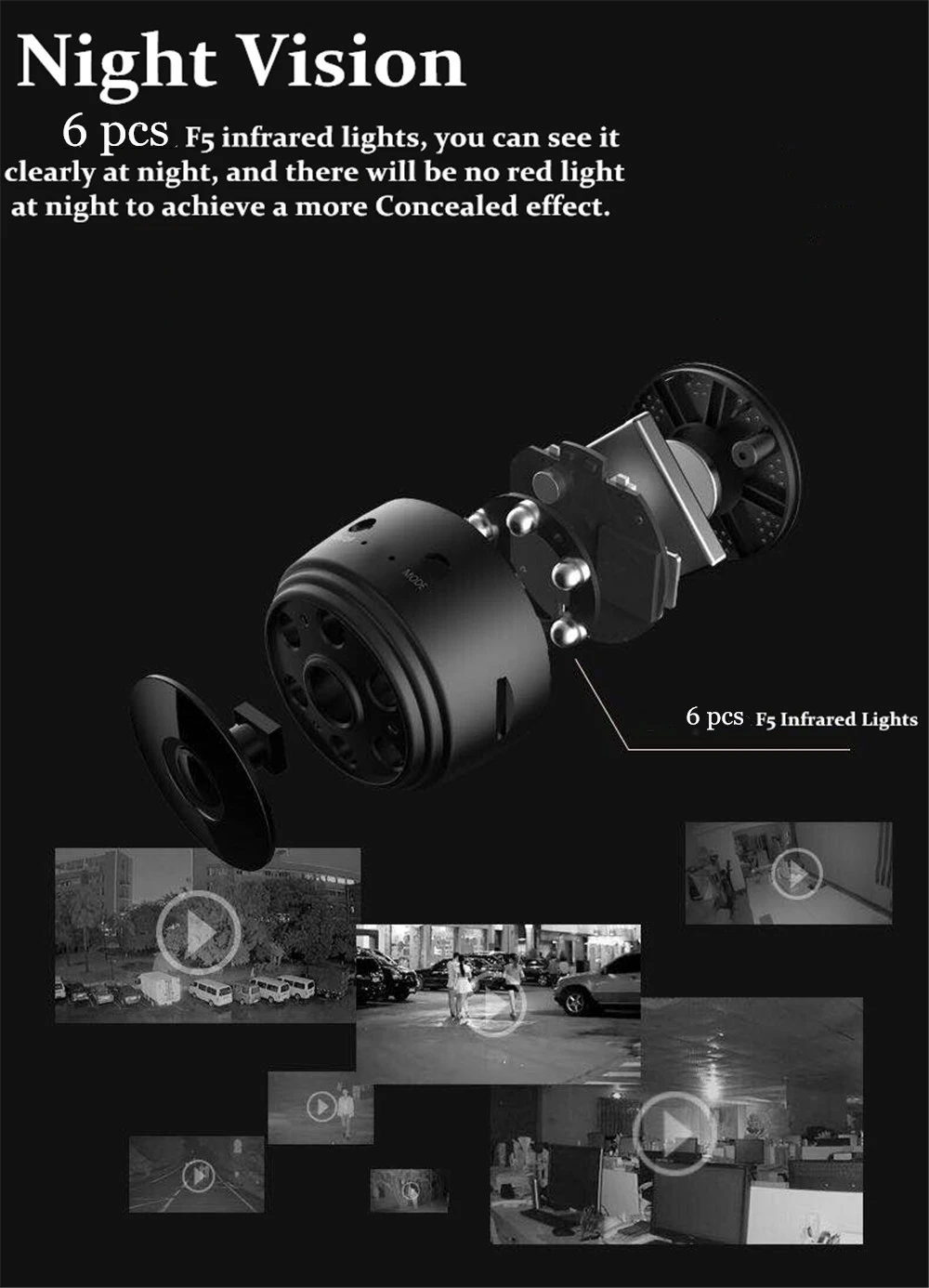 [Супер маленький и Портативный Камера]: камера является одним из самых самая маленькая в мире камера (0,9*1,69 * 1.69in,1 унция) и прилагать усилия к 2,4 ГГц Wi-Fi что делает его идеальным, чтобы следить за вашей любовью или заботой. Вы можете поместить эту камеру в уголок дома, офиса, магазина, автомобиля, даже в карман или на рюкзак с сильным магнитом, который можно адсорбировать на любом железе. Кроме того, может использоваться камера безопасности, автомобильная видеокамера, камера для домашних животных, камера для малышей