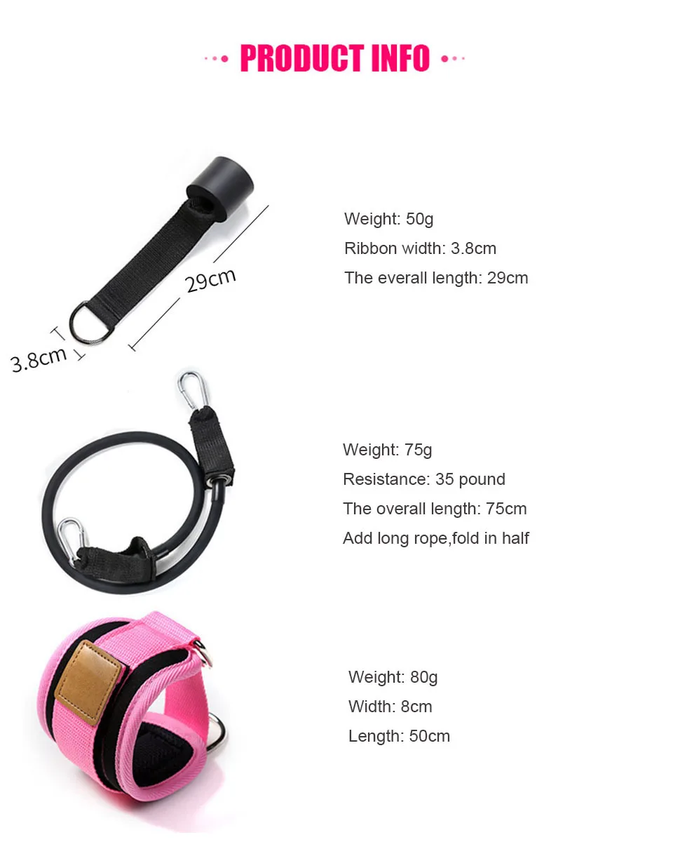 Это ремешок на щиколотке с D-образным кольцом и эластичными лентами обеспечивает долговечность.Очень легко использовать для прикрепления к ноге попы и бедраИсключительный комфорт на подкладке с амортизирующей прокладкой.Стандартный размер, который подходит всем. Размер:Дверной анкер: 3,8*28,5 см,Эспандеры: 75 см, мощность 35 фунтов.D-образный ремешок на щиколотке: 50 смЦвет: синий, розовый, черный, фиолетовыйОсобенности:Изготовлено из хлопкового тампона для оптимального комфорта и поддержки.Для ног, бедер, бедер, силовых тренировок и т. д.Размер: один размер подходит всем (см. Изображение)Примечание:Все вышеуказанные размеры измеряются вручную, могут быть некоторые погрешности только для справки, пожалуйста, ссылайтесь на реальный товар!Из-за освещения цвет может немного отличаться от реального цвета.