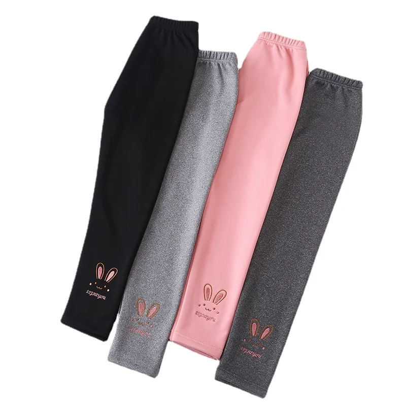 Детские осенне-зимние леггинсы с кроликом для девочек, детские леггинсы с бархатной подкладкой, теплые брюки
