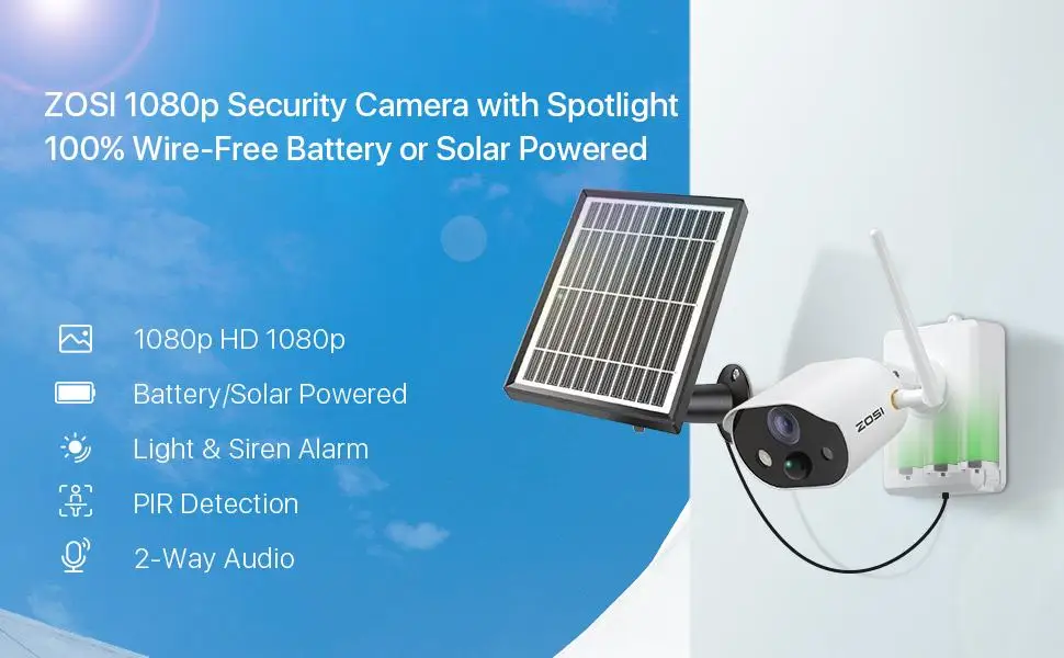 Беспроводная IP-камера видеонаблюдения Zosi C306 с аккумулятором или солнечной батареей, 1080P, HD, улучшенная Wi-Fi камера с пассивным ИК сигналом, с защитой от атмосферных воздействий