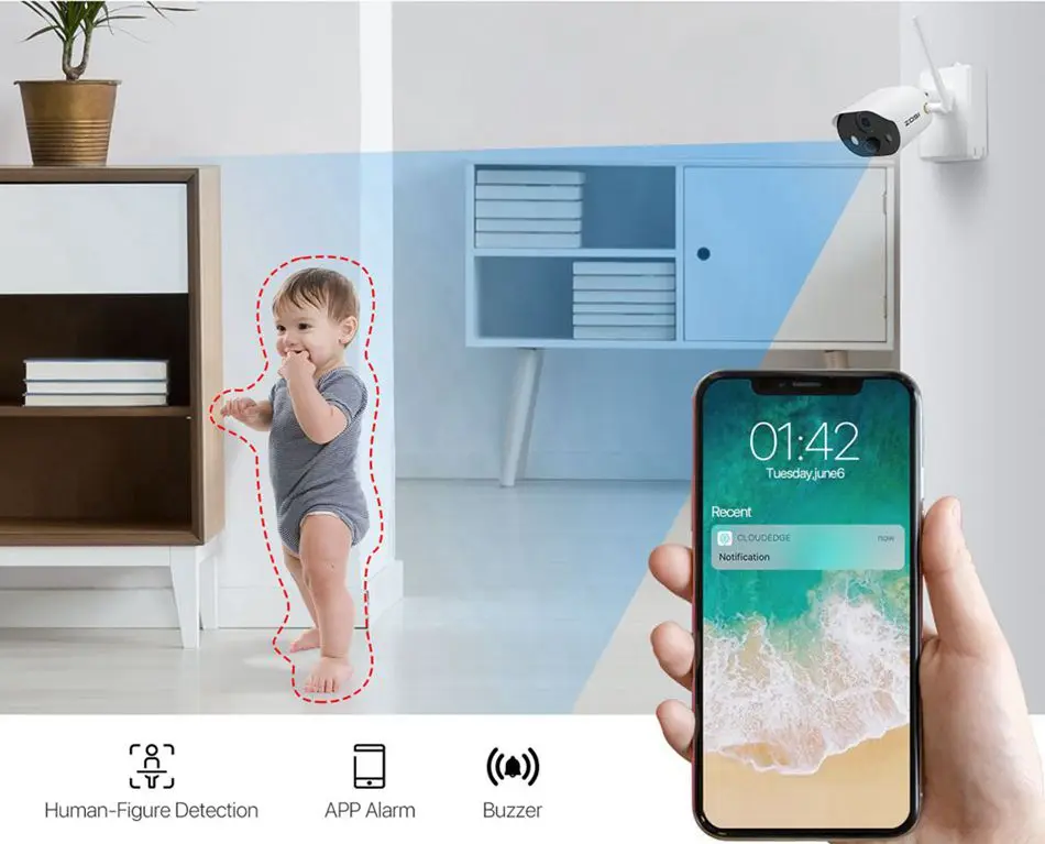 Улучшенное Обнаружение фигуры человека-триггер мгновенные оповещения при обнаружении человека, эффективно избегая ненужных ложных сигналов, вызванных домашними животными или автомобилями.