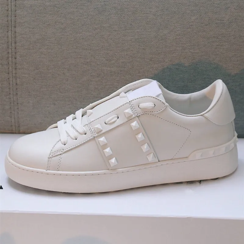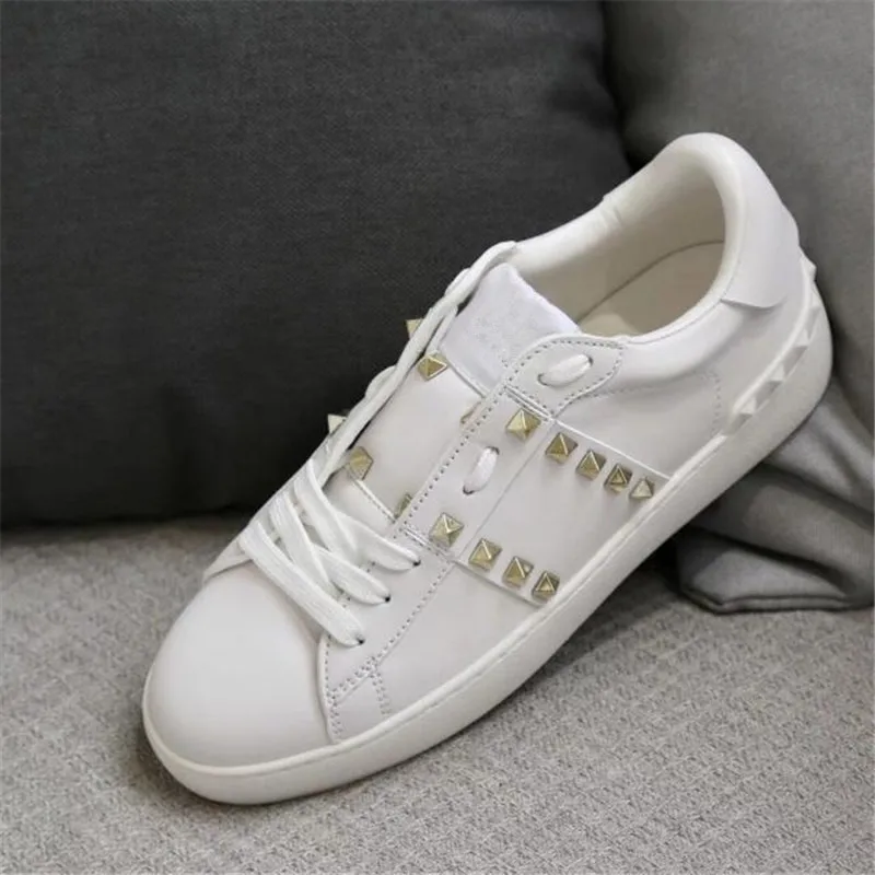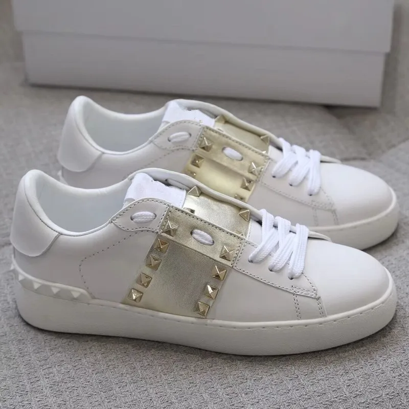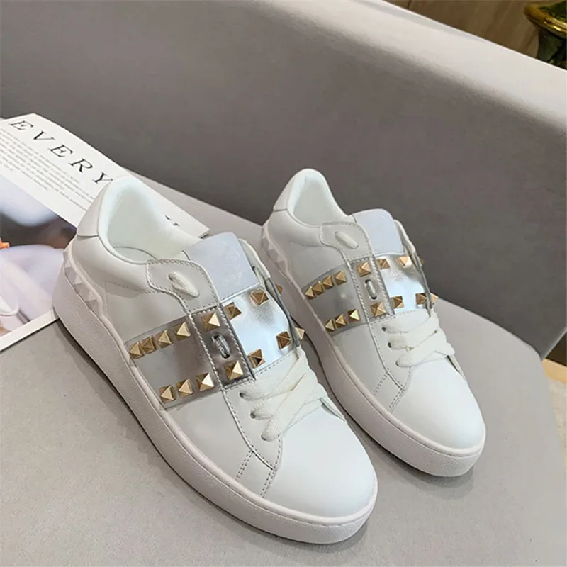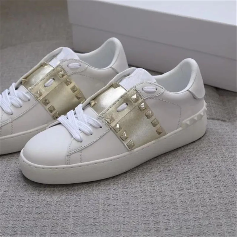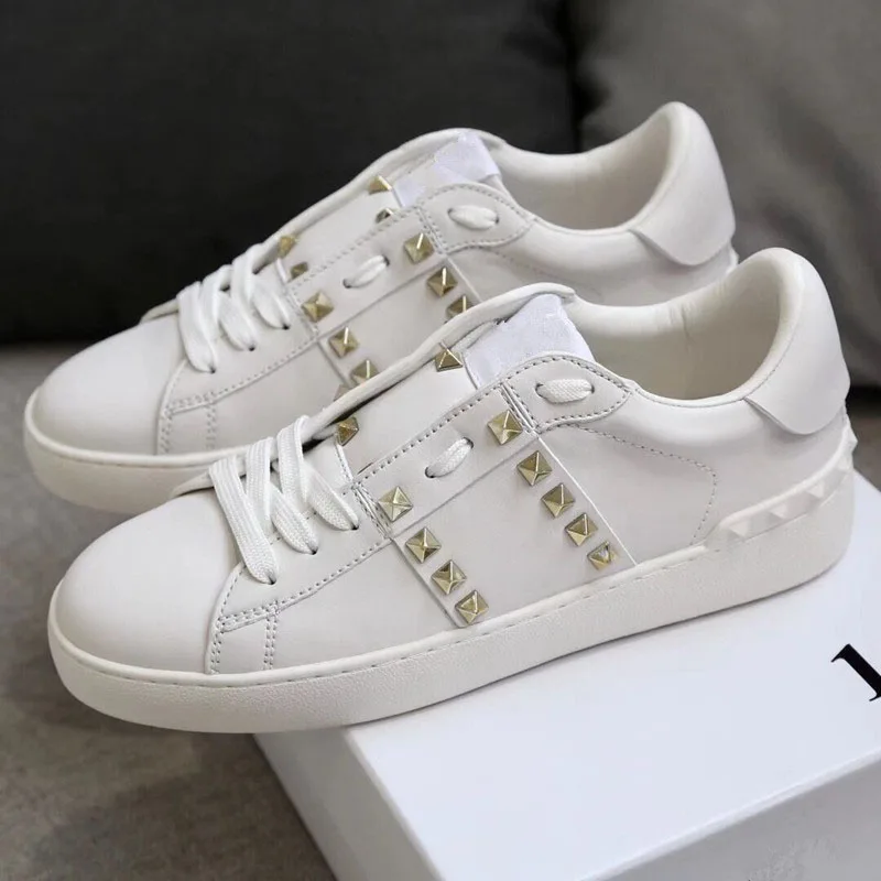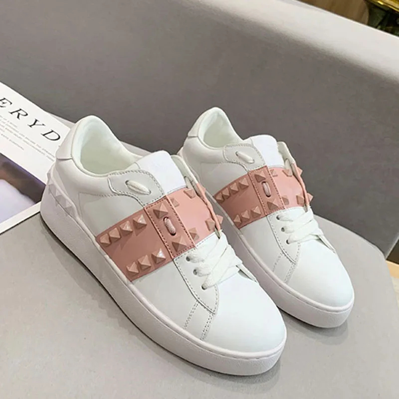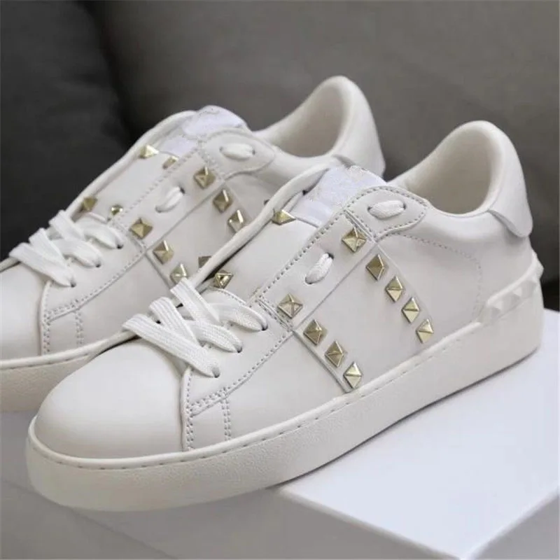 Женские роскошные женские кроссовки с заклепками, повседневная обувь, натуральная кожа, бас, Женский тренажер, шикарный, звезда, белый, пара