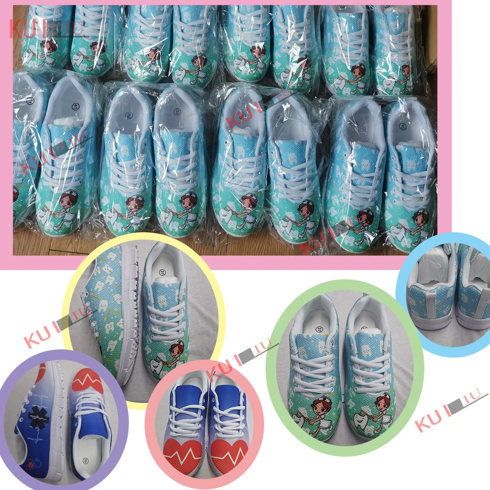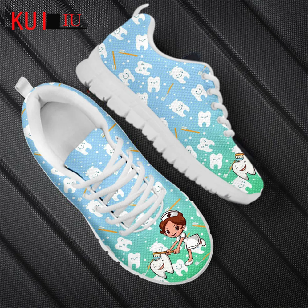 KUILIU Осенняя женская обувь на плоской подошве, забавная модная сетчатая дышащая обувь для стоматологов и медсестер