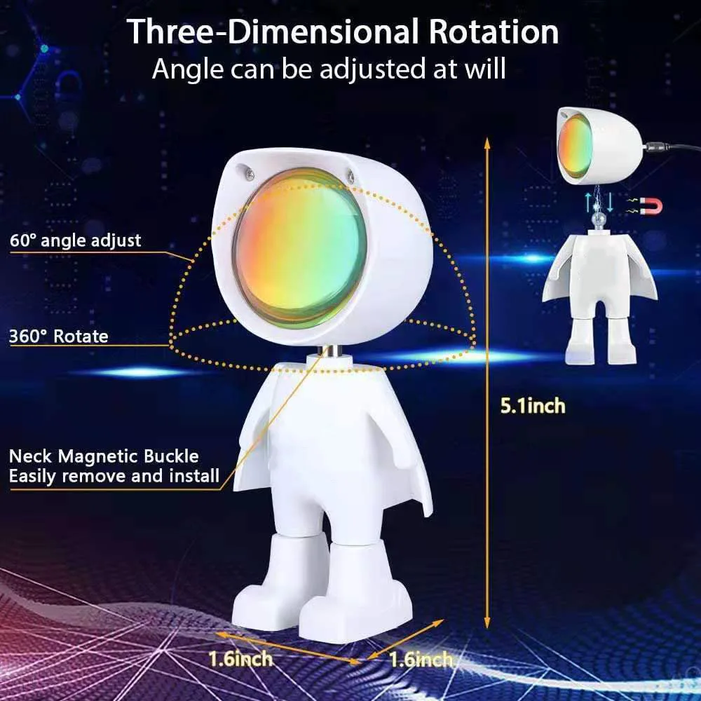 Солнечная лампа с радужной проекцией USB-светильник для астронавта, робота ночник для стола лампа для заката, ночник с бесконечным затемнением атмосферный светильник для спальни