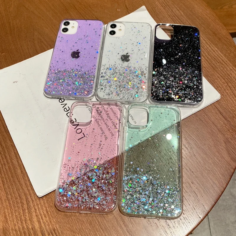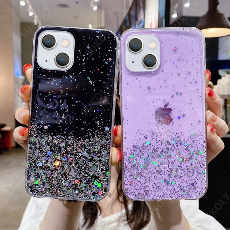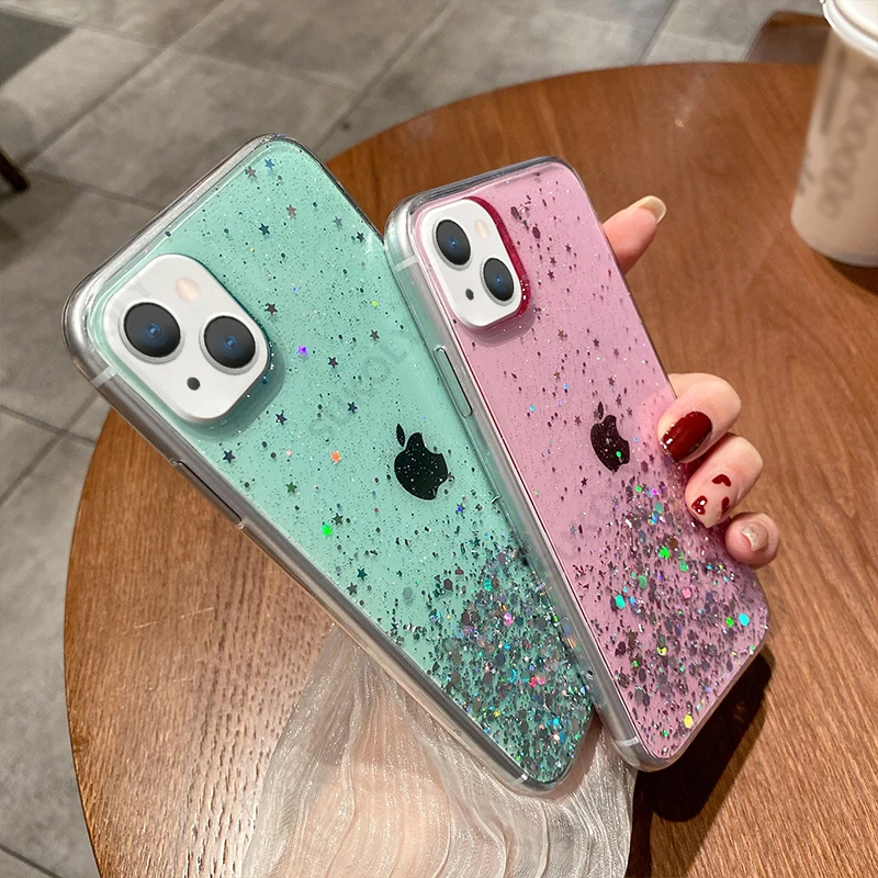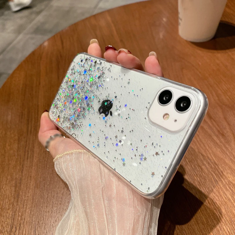 Для iPhone 13 Pro Max 13 Mini XR 8 7 6 6s Plus роскошный блестящий прозрачный эпоксидный мягкий чехол для iPhone 11 12 Pro XS Max X SE 2020