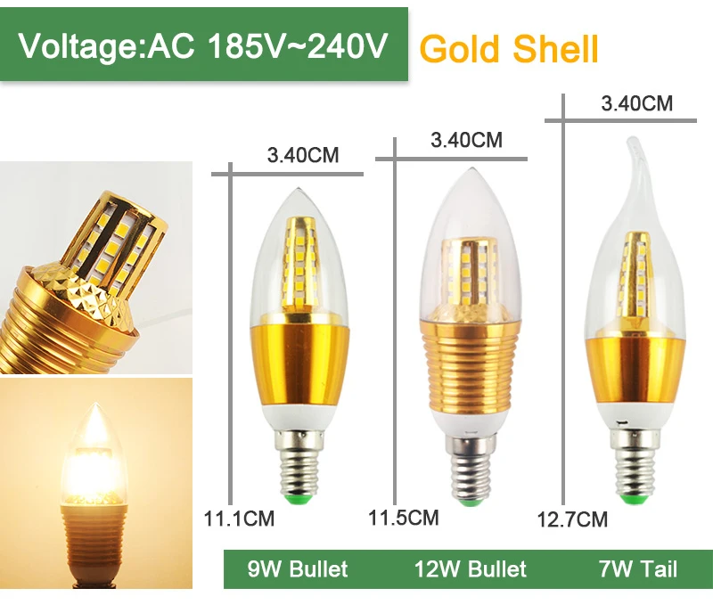 Светодиодный светильник E27E14, 36912151820 Вт, 220 В, 240 в перем....