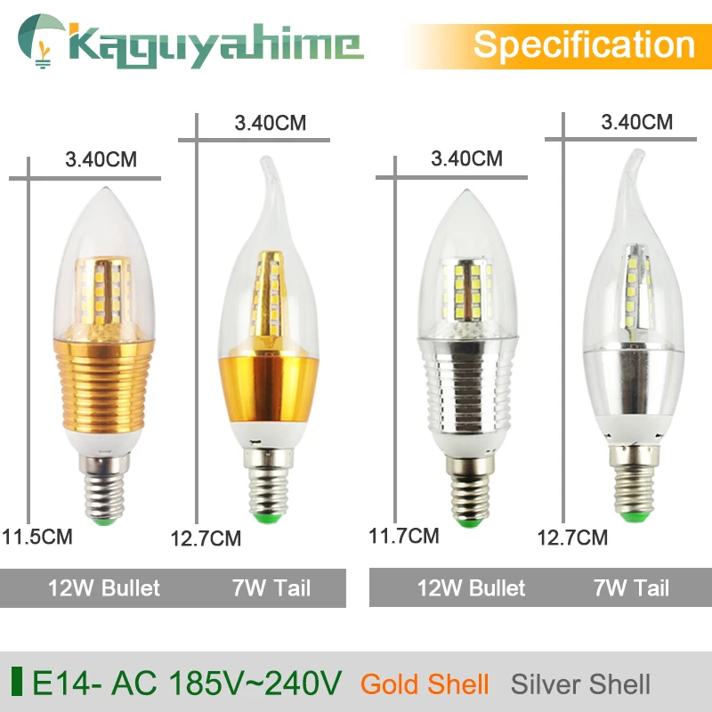 Светодиодная лампа Kaguyahime E14, 3 Вт, 6 Вт, 12 Вт, светодиодная лампа E14, светильник лампа переменного тока 220 В, светодиодная точечная лампа, настольная лампа-Свеча для дома