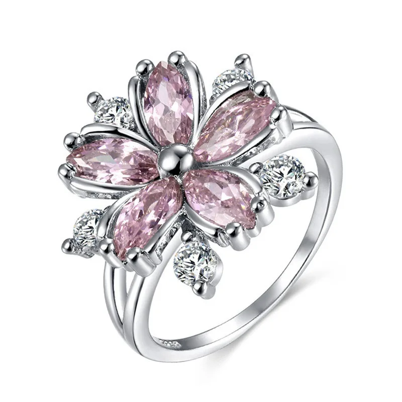 Элегантные модные розовые Помолвочные кольца принцессы Сакура для женщин ювелирные изделия романтичные Свадебные кольца с цветком Вишни из циркония для невесты