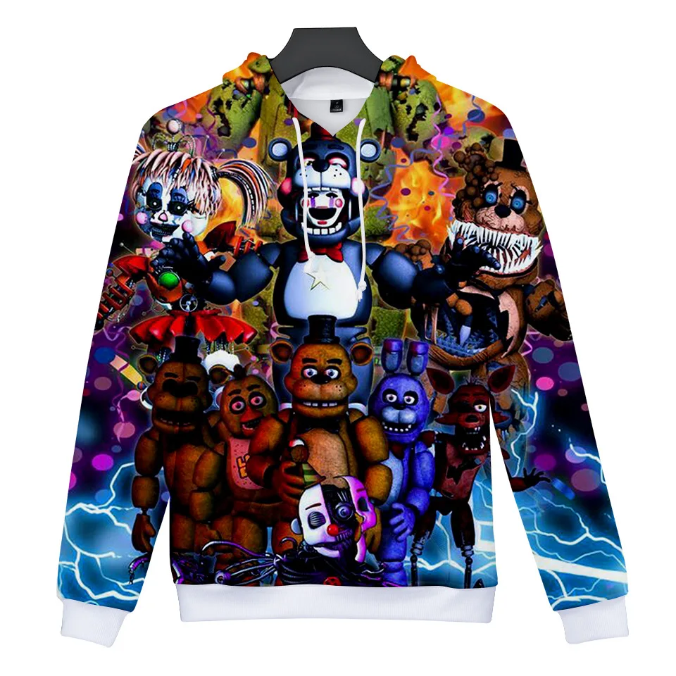 Толстовка с 3D-принтом игры FNAF, модная повседневная мультяшная Толстовка в стиле Харадзюку для мужчин и женщин, Детское пальто с мультяшным принтом 5 ночей у Фредди