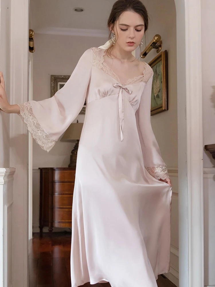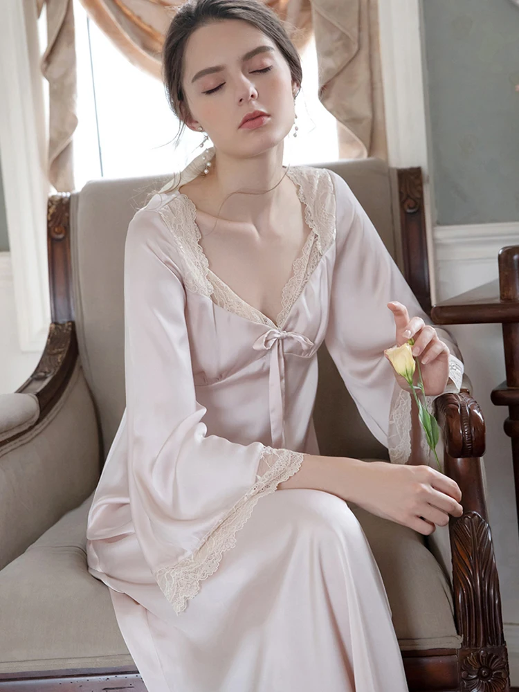 Роскошная французская принцесса Женская длинная сексуальная ночная рубашка из сатина шелковые ночные рубашки Ночная рубашка Нижнее белье Ночная рубашка
