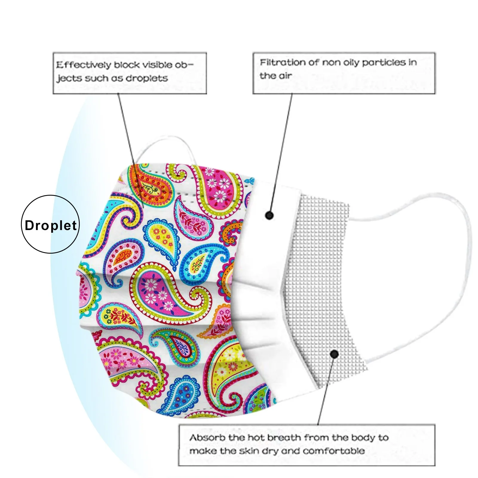 10 шт. взрослая маска с принтом пейсли одноразовая маска для лица промышленная 3-слойная Ушная петля