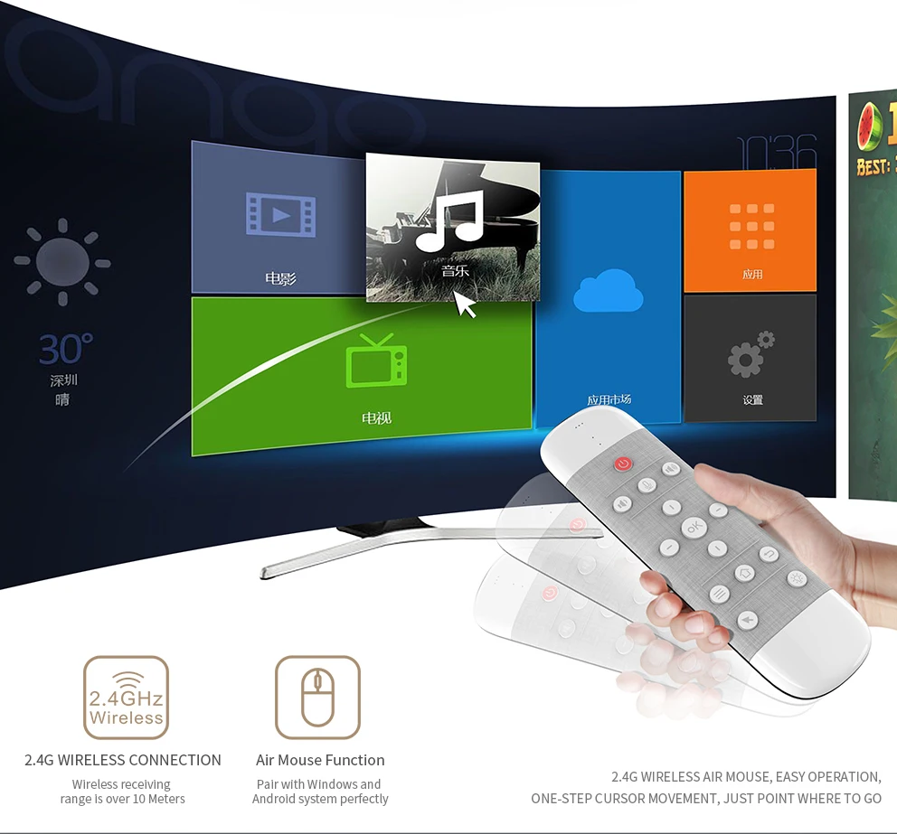 - Voice search function. All you have to do is ask. Speak into the voice remote control and TV Box searches for what you want. Ask for the best in action movies, today's weather, or the latest celebrity news!