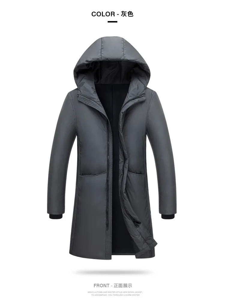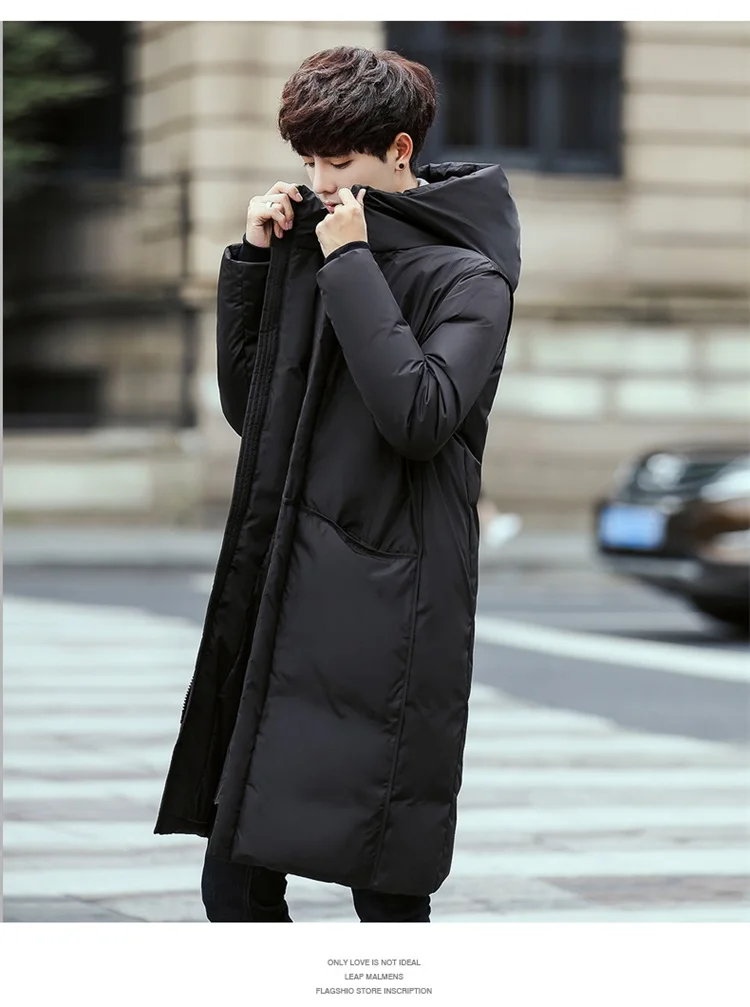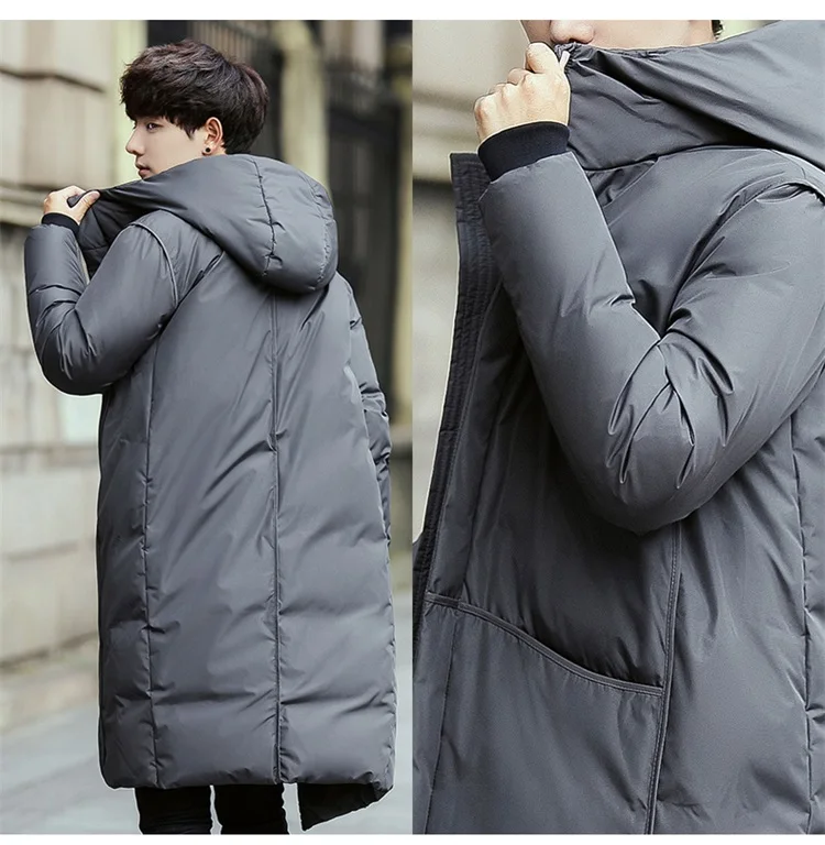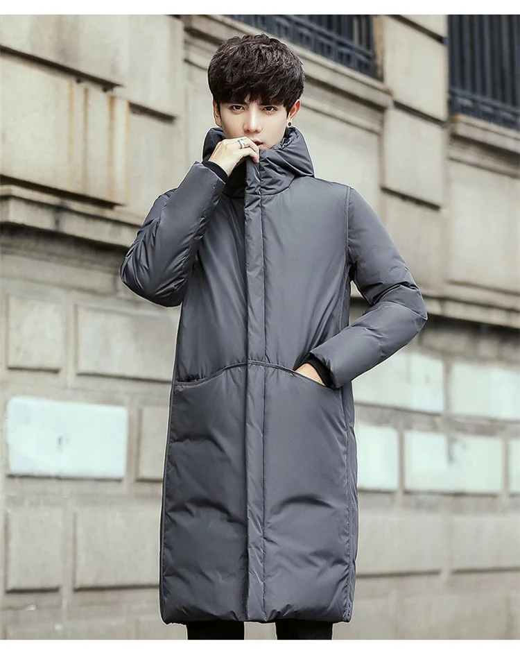 Мужской пуховик с капюшоном, длинный теплый белый пуховик, зима 2021