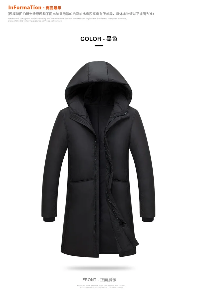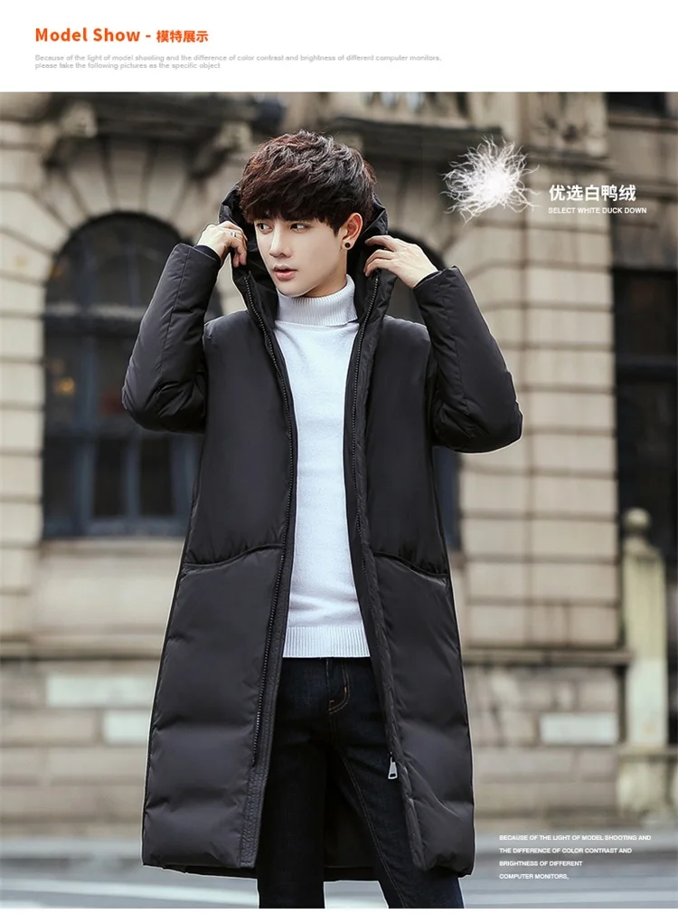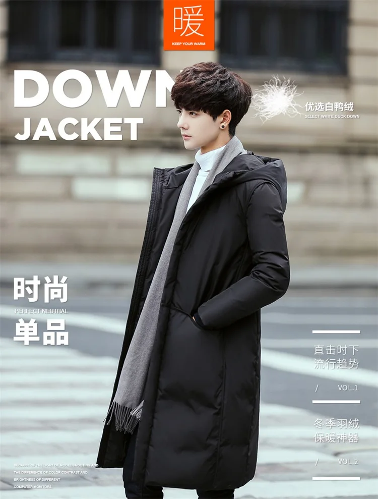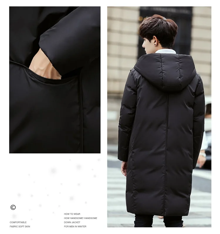 Мужская длинная куртка на утином пуху с капюшоном, Мужская Толстая ...