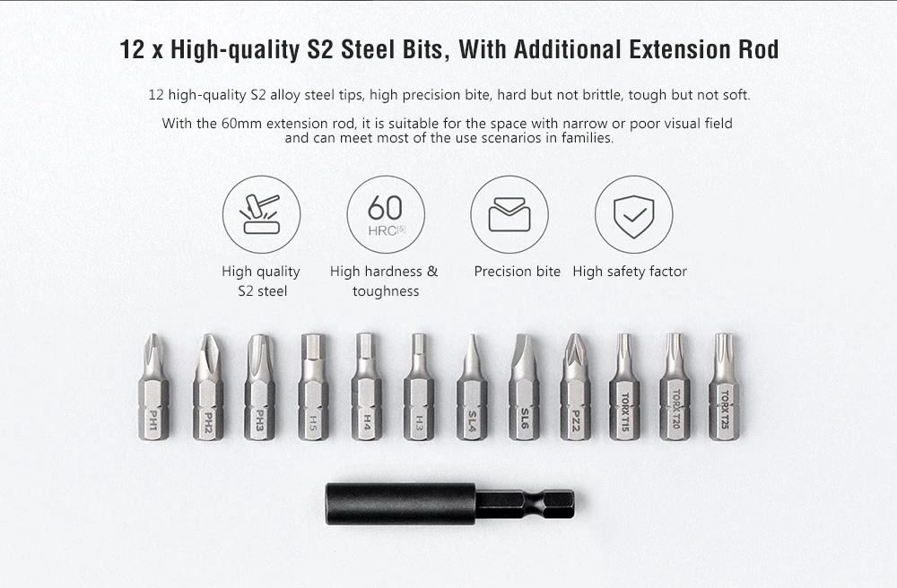 Беспроводные электрические отвертки XIAOMI Mijia с новым дизайном, 12 стальных сверл S2 и одна отвертка, Новое поступление 2019Mijia Power Screw Drivers получила премию iF DESIGN AWARD 2019,iF Industrial German Design AwardЛегкий в эксплуатации, прочный и портативный.5N.m максимальный крутящий момент, 2000mAh большой литий-ионный аккумулятор ЕмкостьЕго можно широко использовать в большинстве бытовых электроприборов.