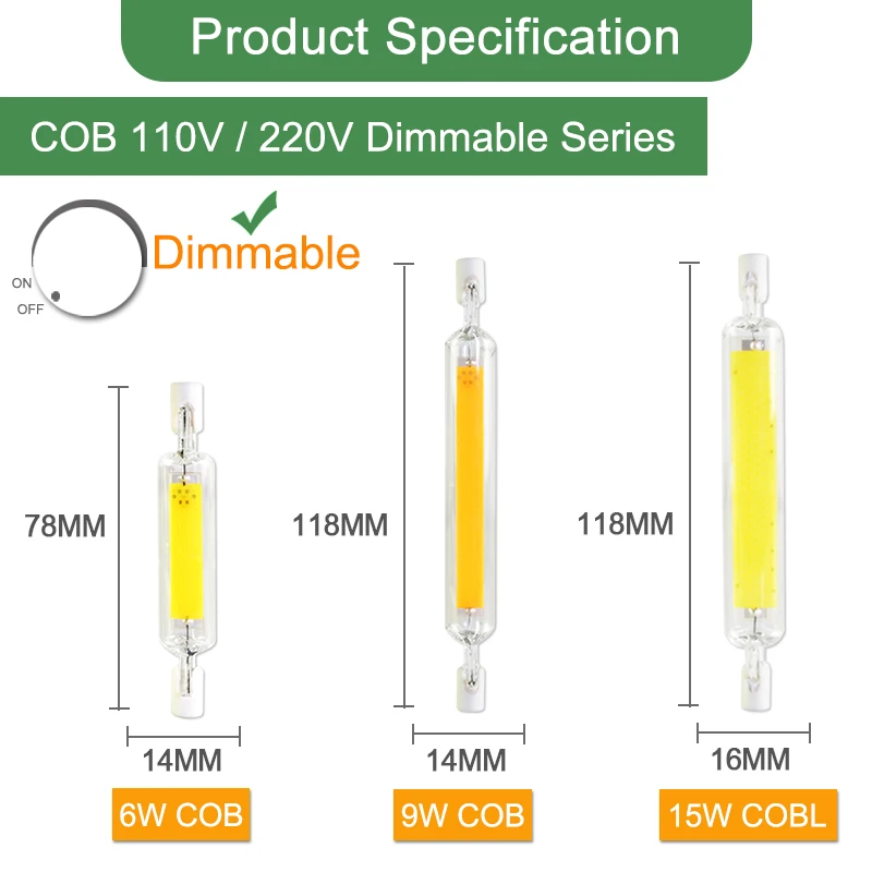 Диммисветодиодный емая Светодиодная лампа Kaguyahime 6 Вт 15 Вт, лампа R7S, 220 В, 78 мм, 118 мм, 135 мм, сменная точечная лампа, галогеносветильник лампа 50 Вт 100 Вт, прожектор 9 Вт, 12 Вт