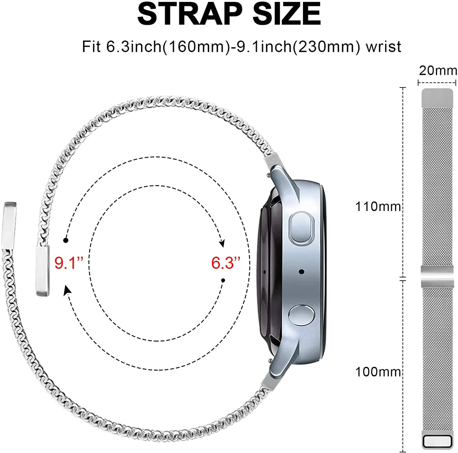 20 мм Совместимость:Для Samsung Galaxy Watch 4 44 мм 40 ммДля Samsung Galaxy Watch 4 Classic 46 мм 42 ммДля Samsung Galaxy Watch 3 41 ммДля Samsung Galaxy Watch Active/ Active2 40 мм 44 ммДля часов Samsung Galaxy Watch 42 ммДля Huawei Watch 2 / watch 2 pro / watch GT-2-2e-Pro 42 мм/Honor Magicwatch 2 42 ммДля Samsung Gear S2Для Samsung Gear SportДля Moto 360 2nd Gen Мужской 42 ммДля Fossil Q GazerДля Huami Amazfit bip-U-S/ GTR 42 мм/GTS-2-2e miniДля Ticwatch 2 / Ticwatch EДля Garmin Vivoactive 3 / vivomove HR sport / Forerunner245 /Forerunner64522 мм Совместимость:Для Samsung Galaxy Watch 3 45 ммДля часов Samsung galaxy watch 46 мм,Для Samsung gear S3,Для Huawei watch GT-2-2e-Pro 46 мм,Для Honor honor MagicWatch2 46 мм/Magic/watch Dream,Для Huami amazfit GTR 47 мм/pace/stratos,Для Huami AMAZFIT 2 stratoS,Для цветных часов Xiaomi,Для Garmin vivoactiveДля Fossil Gen 5 Carlyle /Julianna /Garrett /Carlyle HR,Для умных часов Fossil Hybrid HR,Для Fossil Men's Gen 4 Explorist HR,Для спорта FossilДля ticwatch pro/ E2/S2,Для pebble time,Для поколения гальки,Для Asus Vivowatch/ZENWATCH/ZENWATCH2 мужскиеДля LG W100/LG W110/LG W150Для ZTE Quartz/MOTO360 46 мм версия