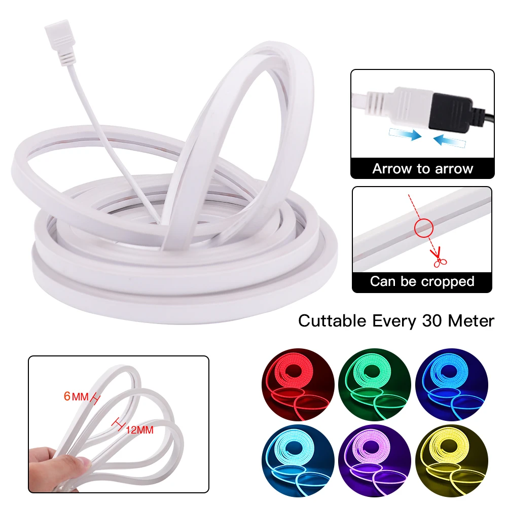 Светодиодная ленсветильник RGB, 12 В, гибкая, неоновая, водонепроницаемая, символ в виде ленты