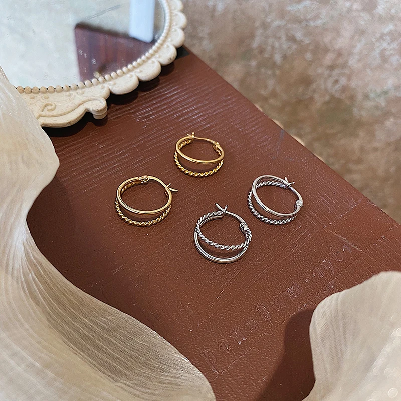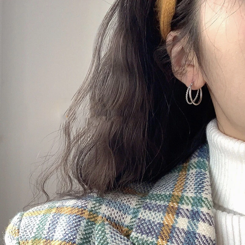 Двухслойные простые круглые серьги-кольца серебряного цвета для женщин корейские модные ювелирные изделия подарки