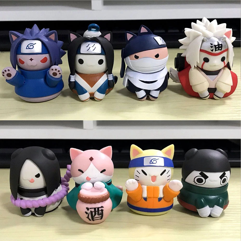 8 шт. Аниме фигурки Наруто Кот Наруто Мини версия Q фигурка модель украшения мультфильм Kawaii Мальчик Дети Игрушка Рождественский подарок