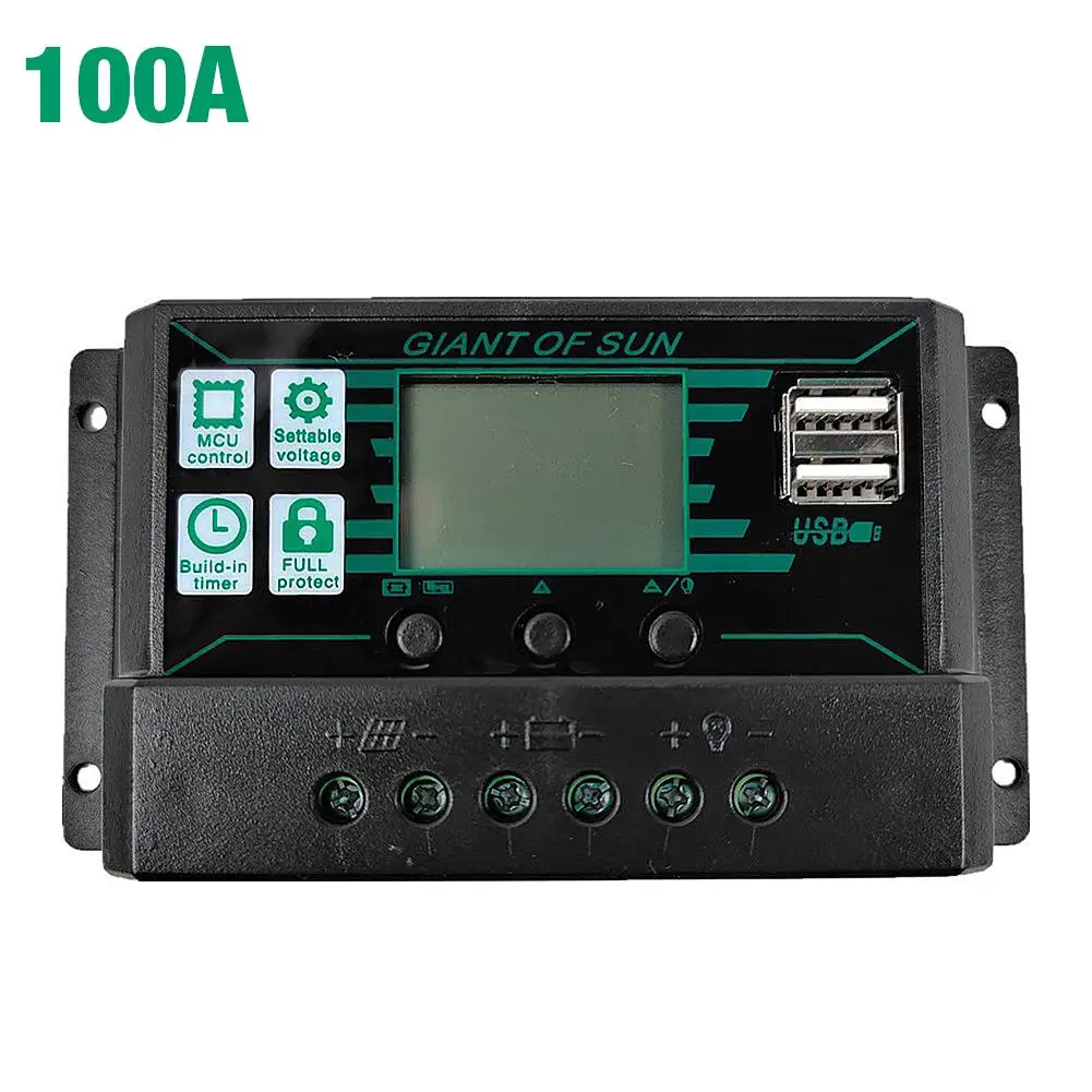 Контроллер заряда солнечной батареи MPPTPWM 2-в-1, 12 В, 24 В, регулятор батареи солнечной панели, 2USB-порта, ЖК-дисплей, 10A, 20A, 30A, 40A, 50A, 60A, 100A