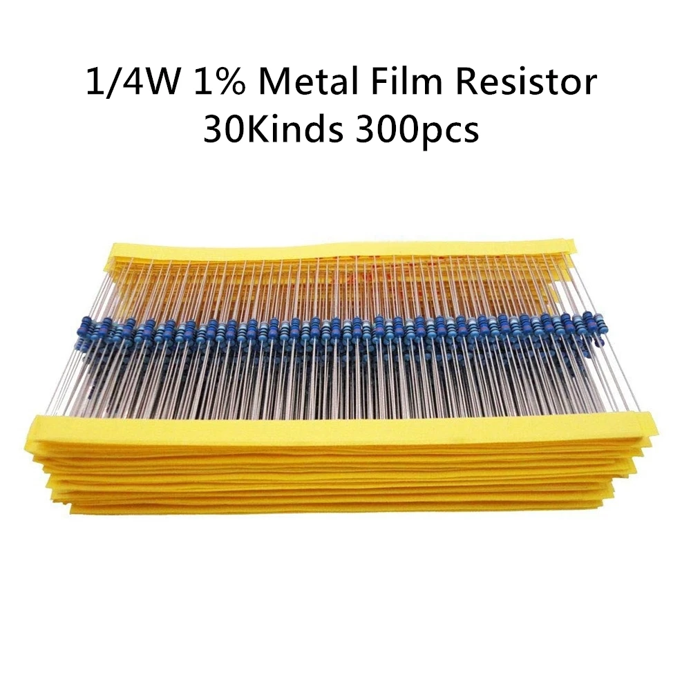 300 шт.лот 14 Вт набор металлических пленочных резисторов 1% набор резисторов в ассортименте 10 -1 м ом набор сопротивления 30 значений по 10 шт.