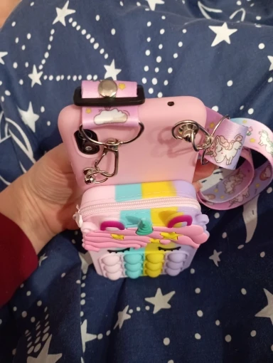 очень красивый чехол. дочка в восторге, благодаря сумочке телефон можно поставить и смотреть мультики без подставки