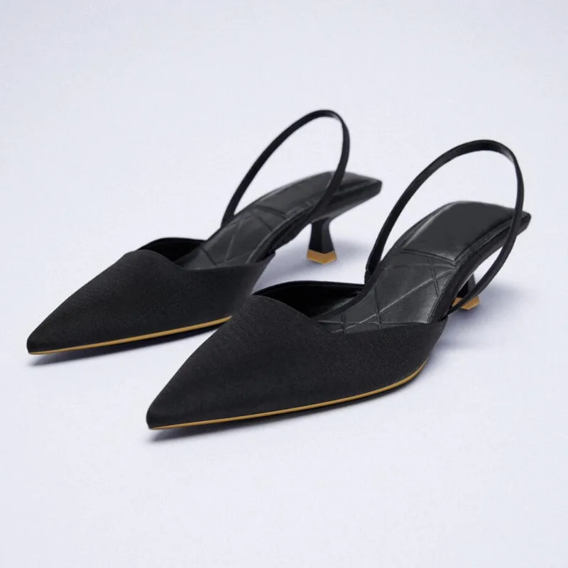 Женские босоножки без задника с острым носком, на среднем каблуке
