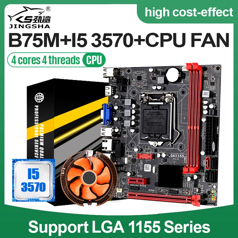 Материнская плата B75M, с процессором i5 3570, радиатором LGA 1155, для ЦП i3 i5 i7, с поддержкой DDR33, 3 порта USB 3,0, SATA3.0