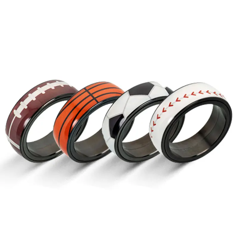 Кольцо для регби с героями мультфильмов, аниме, футбола, баскетбола, регби, вращающееся мужское Спортивное повседневное украшение из нержавеющей стали, регулирующее настроение
