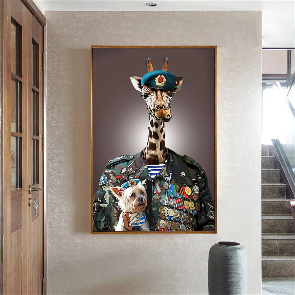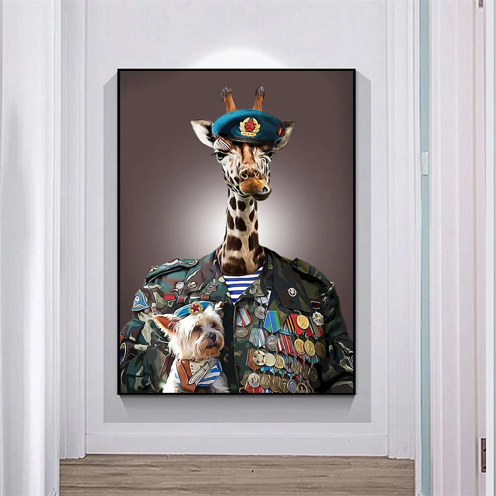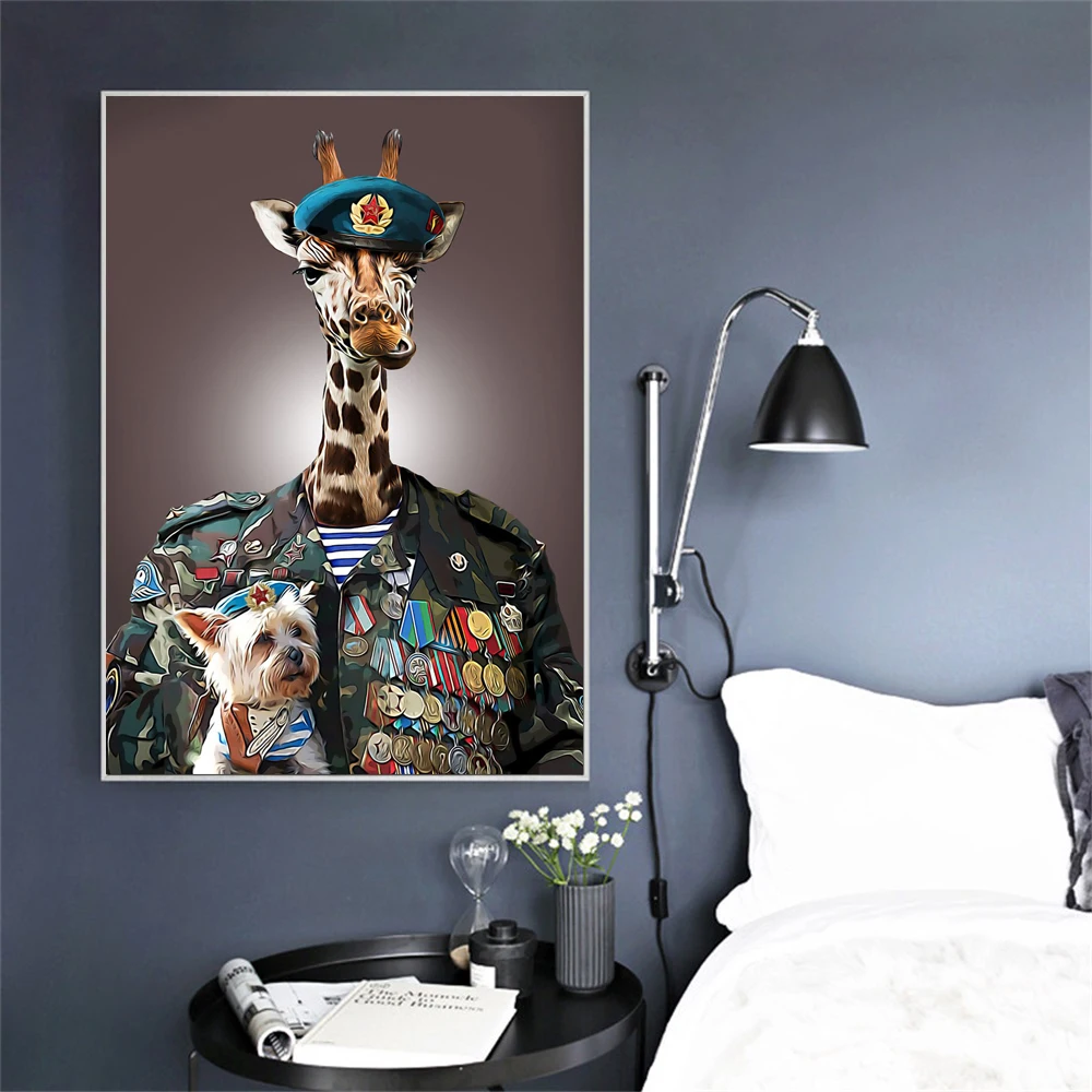 Полковник постер с жирафом, настенная живопись, печать на холсте, забавные животные, военная картина для гостиной, украшение для дома