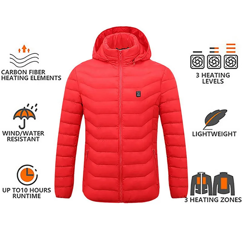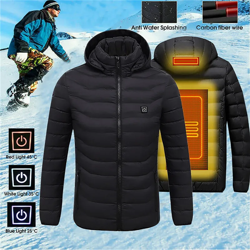 2021 NWE мужские зимние теплые куртки с подогревом USB умный термостат однотонная одежда с капюшоном с подогревом водонепроницаемые теплые куртки