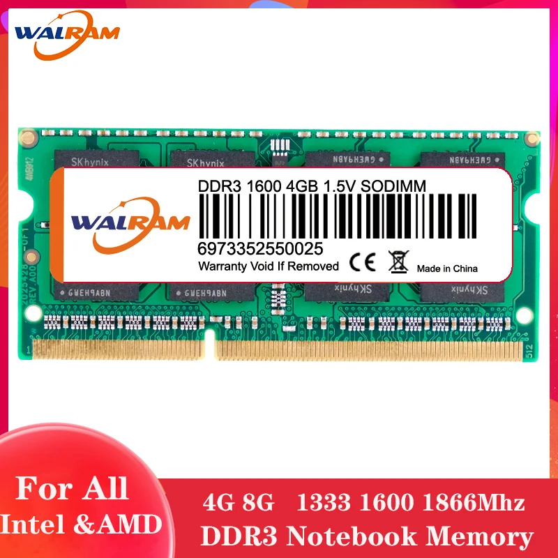 ОЗУ WAL RAM DDR3 4 ГБ, 8 ГБ, ОЗУ для ноутбука 1333 МГц, 1600 МГц, 1866 МГц, 204pin, ОЗУ для ноутбука Intel и AMD