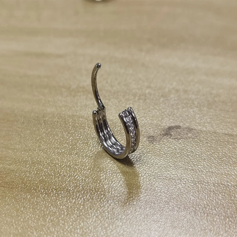 Серьги-гвоздики из титана F136 для пирсинга, кольцо с раскрывающимся сегментом и фианитом для соска хрящевой ткани уха, Козелка, губ, тела, ювелирные изделияпирсинг титан f136пирсинг для сосков из титана