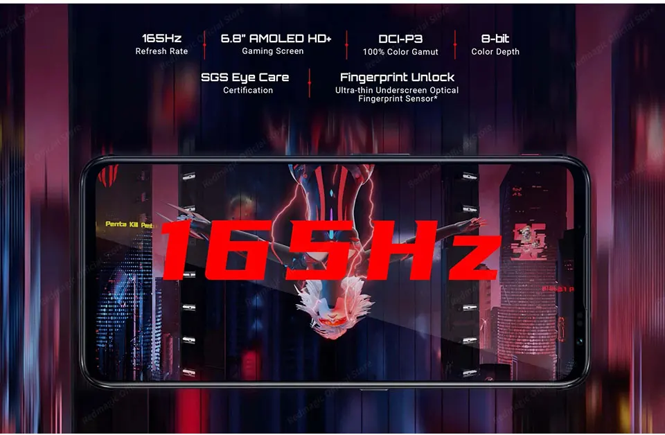 Скорость-это сущность в выигрышных играх и в том, что у вас Самый гладкий мобильный экран, и REDMAGIC сделала все, чтобы предоставить вам самый быстрый экран. С 165 Гц частота обновления, это 6,8 "AMOLED экран обеспечивает прекрасный HD + визуальные эффекты со скоростью до 165 кадров в секунду. Получите полный контроль и преимущества этих скоростей с частотой дискретизации нескольких пальцев REDMAGIC 6S Pro 720.