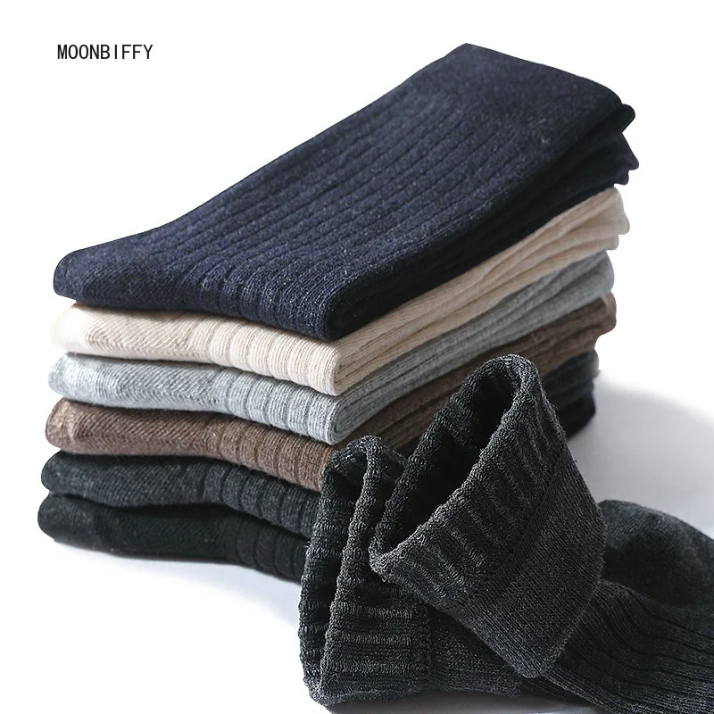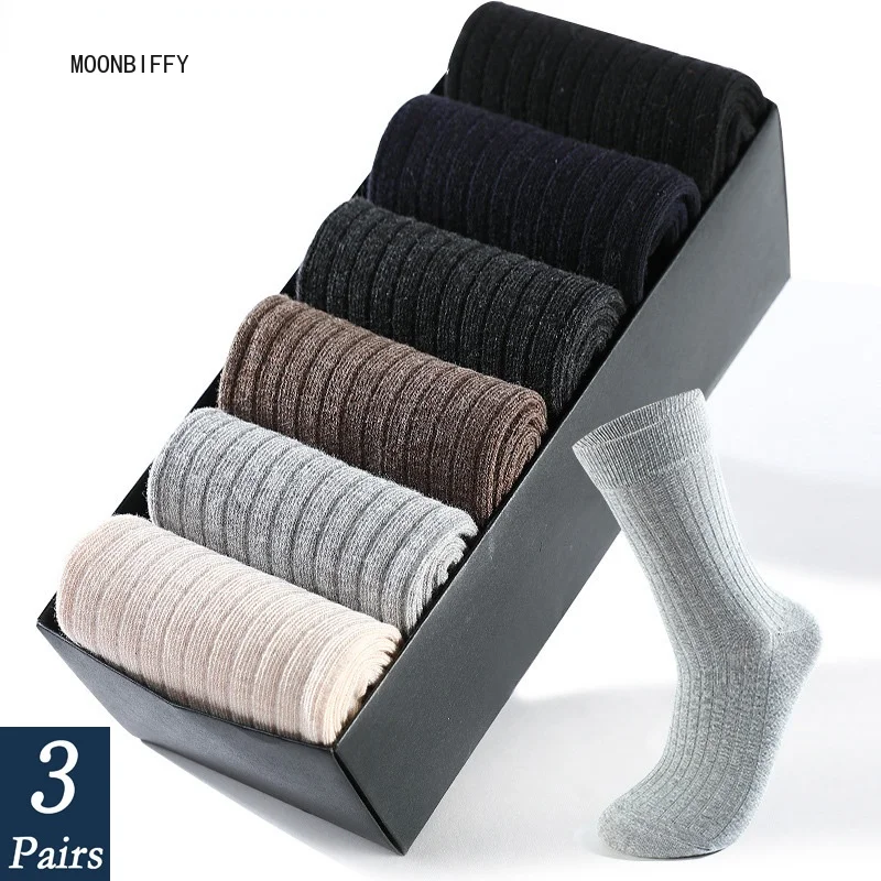 Хлопковые зимние мужские носки 3 пары, черные полосатые деловые повседневные теплые длинные носки, новинка, мягкие дышащие короткие носки высокого качества