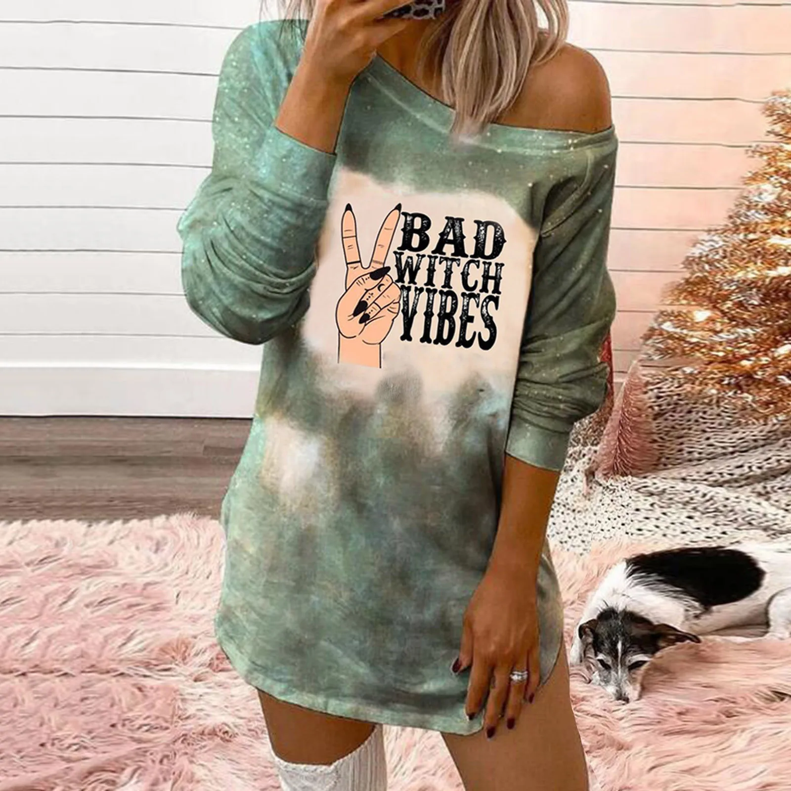 Женское платье-свитшот с длинным рукавом и круглым вырезом